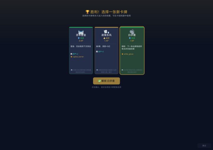 1、把抽象的事件具象化为Boss,玩家可以自己构筑一套牌去挑战PVE2、挑战成功后获得战利品,卡牌三选一,并放入自己的牌库3、目前跑通了MVP,还有待时间去提高平衡性