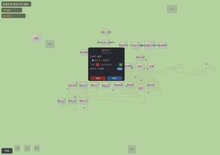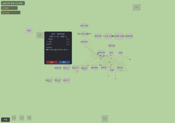1、大部分建筑增加了拆迁办功能2、房屋可以出售给小圆们,还没测试到小圆是否贷款首付买房3、工厂建好只能选择生产一样商品,是为了固定该工厂数据,进行国内同比,第一名可以更名上市4、玩家买地皮建设房屋,注意建设周期不同5、纸券系统初级完成,还有待大家的测试,看是否满足“追涨杀跌”6、每日结算改为“切”,包括小圆们的诉求,和玩家遇到的事件。