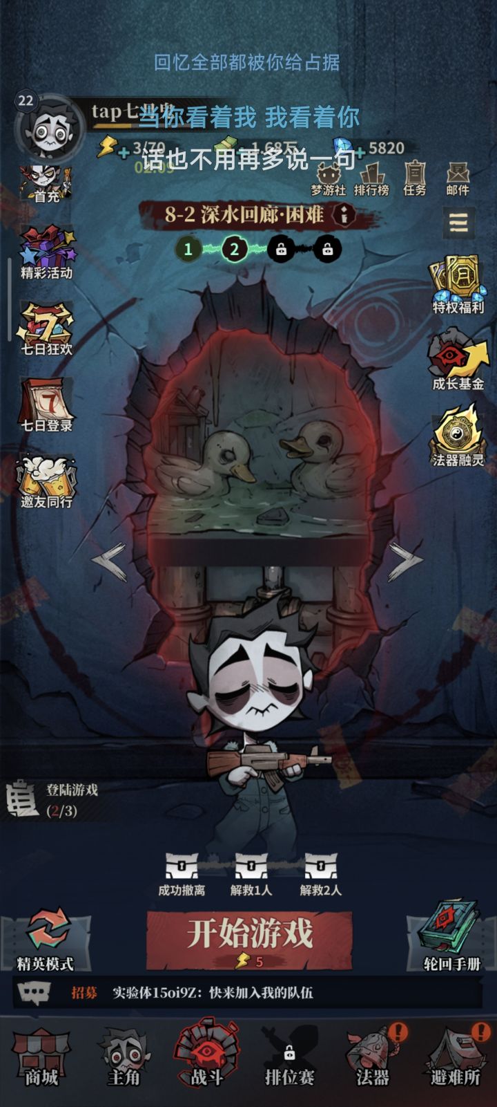 一:排位赛里所有的材料都是带不出去的,撤离后会自动转化为积分,积分可以提高段位,所以等灭队之后完全不用把所有的放大镜全搜了,搜60%撤退即可。二:一定一定一定要找个长期稳固可开麦交流的搭子。如果不能开麦显示版本低就删掉游戏重新下载就行了。局内交流可以打配合,比如一个藏起来搜资源当泉水,另一个就可以出去打人。三:每个玩家都可以复活,只要有队友就是无限复活,所以很考验队友会不会玩,建议找长期搭子。