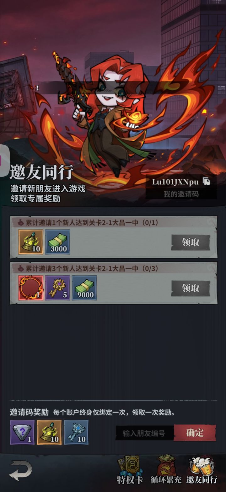 兑换码合集,试过了,目前都能用 5级输入同行礼包码 LVWNMjqNZL 银箱子钥匙*10,唤宠铃*10,紫色符文*1 6jtjv7 c97s4h wxlh666 wxlh888 ZB9527 vip666 vip888 vip999 ZrDMw4 UD7C3R WXLHTAP 五级输入在邀友同行界面输入#无限轮回 LVWNMjqNZL 新增兑换码 限