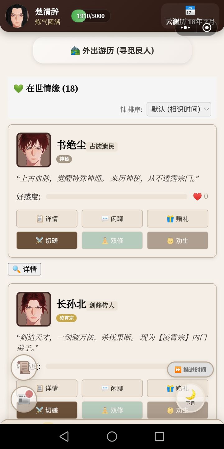 因为开头只看了一下那个介绍,没仔细看,后面找不到了,不知道有些问题介绍里面有没有说但还是想问一下,不意思功法在哪里看?目前我试了一下,好像只能修炼一种功法。然后玄阶的青云剑和火系功法,加成要比地级的两种功法加成都要强。然后功法的加成,好像不会加到每个月的修炼上。因为每个月点那个修炼,每次都只能是10~15,是加成在下一个月自动修炼上吗?宗门也不知道在哪里看和在哪里选
