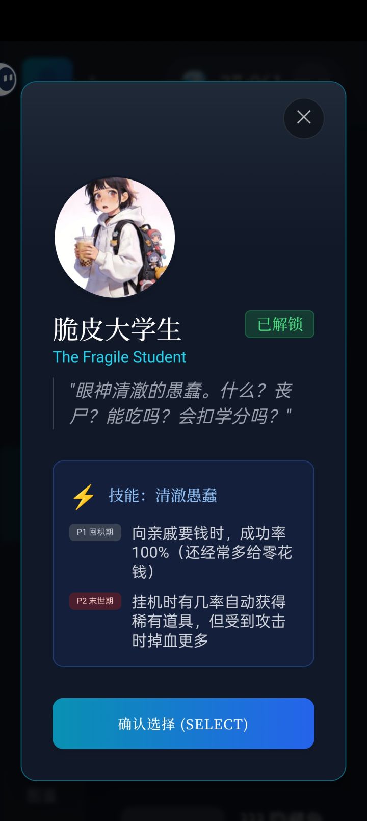 核心职业是脆皮大学生,选正常体验,选跳过会少很多开局资金,开局先在通讯录找母亲拿5万,拿完5万直接去股市,买医疗股,买医疗股价格最高的那一个,后续资金全买这一个,买完去贷款,先找亲戚借一次,再贷4次款,这样时间刚好到第二天,再找亲戚,这些资金全去买股票,后面等乞丐,给他汉堡,他会给一个指尖陀螺,陀螺拿去市场卖,能给5万,后面就纯挂机了,等第三天到第四天,再去通讯录找王总,小胖,王经理,王总给5千,