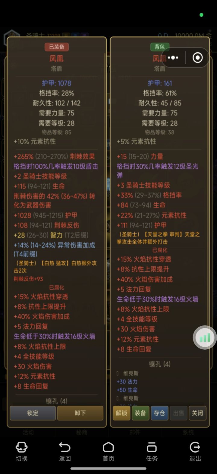 一句话定义,一个基本成熟的圣骑士高度达到了dps8-10的水平,以前2-3倍的水平。核心是什么?85级别装备(28级可装备)荆棘圣盾,核心逻辑是荆棘反伤的数值,可以转换为伤害。在图片里面,我做了两个数据对比。可以看到,在其他的装备不变的情况下,是变换盾牌。伤害直接提升了一倍!目前的版本还有一个小bug,是技能里面的荆棘并不增加伤害!所以大家不用在这个里面去浪费技能点。那么是不是还有另外一个