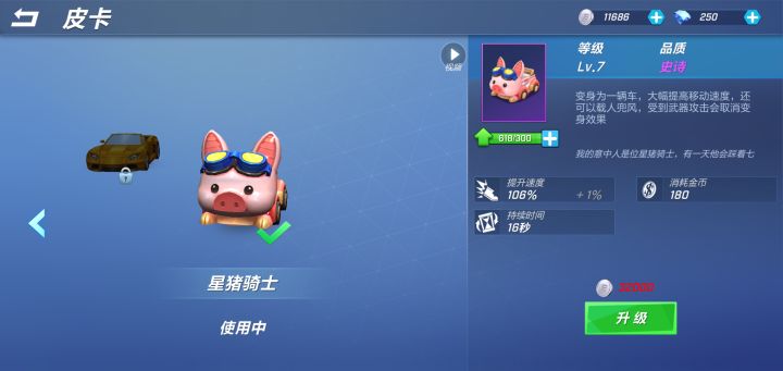 皮卡,消耗180金币,持续时间16秒,增加速度随等级提高而提高。皮卡是许多人秀的起点,在游戏刚开始的版本,皮卡受到伤害不会打断,所以配合生命上限,可以无限秀追捕者,对游戏平衡造成一些影响,在后续版本被策划一刀切成受到伤害打断,持续时间减少。但是这也没能让小伙伴们放弃这个道具。皮卡有他独到的有点,但是也要注意许多东西一、优点1、皮卡加速快,与疾跑相比,皮卡可以直接加速100%,随着等级提高还