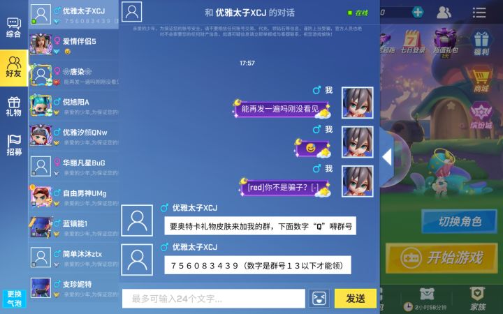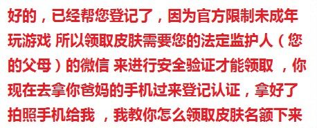 笑死我了,刚刚上大号,看见有个人在送皮肤,果断接小号跟他聊天加你QQ群之后,上来就让我截图就这?未成年?一看就是按流程办事果断举报了好吧
