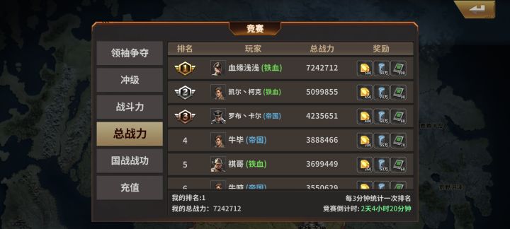 游戏中的资源获取方式很多,可以大致分为以下几类,其中除了最基础的资源获取方式,还给大家介绍一些小技巧,帮助大家更好的体验哟。 一、基础资源1.钻石。游戏中的充值货币,可通过:任务日常、国战、登录、内阁任职、基地、贸易、争霸、充值等方式获取与累积。2.银币。游戏中的主要货币之一,消耗较大。主要通过:铸币厂征收、雕像领取、商店兑换、特惠礼包、各类邮件、活动、挑战副本等获取。3.石油。游戏中扫