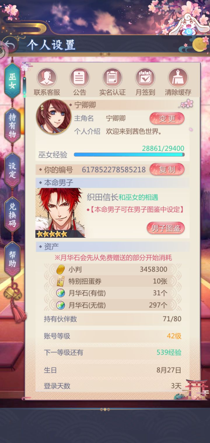 游戏刚开服就来了,玩了几天了,从只开始的新手十连的第一张五星(就是信长诶嘿嘿)到通过各种途径疯狂攒石头过剧情(简而言之就是狂肝)慢慢收集了更多的人物,现在终于队伍是固定下来了慢慢升级就好了(作为一个非洲人感觉已经很满足了)hhhhh不得不得游戏中每个人物各自的剧情都十分有趣完全没有看着无聊的感觉,人物的造型也超级美型的哇,最最最后就是声优哇!!!配音听着超舒服的哇(啊老夫的少女心)最后在补一句!!