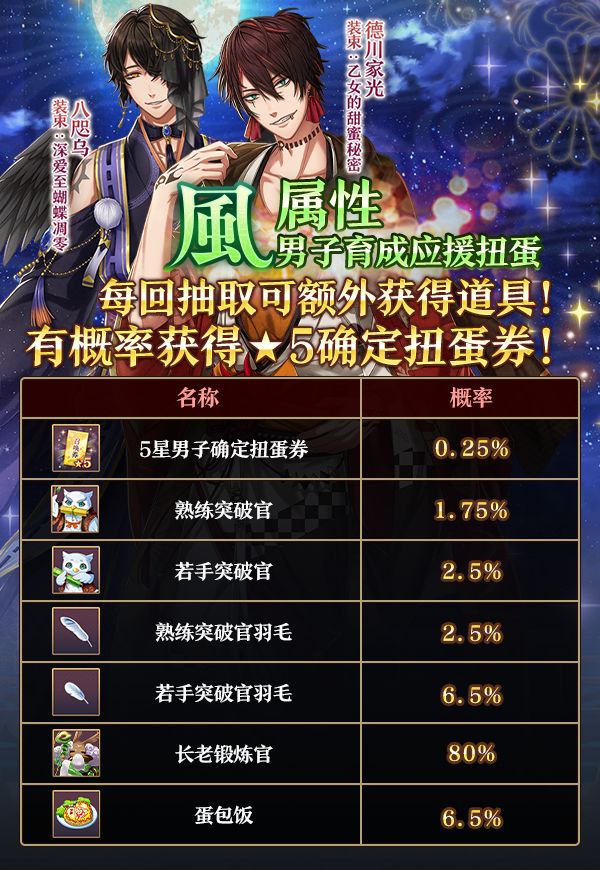 【男子扭蛋】风属性男子应援扭蛋即将开启!