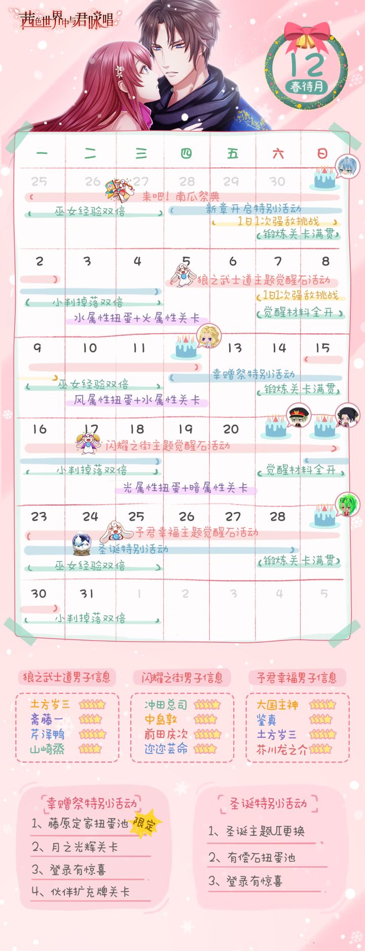 亲爱的巫女大人好!12月日历在巫女大人们的提议和修改意见下,兔兔们肝出了一个新版本!