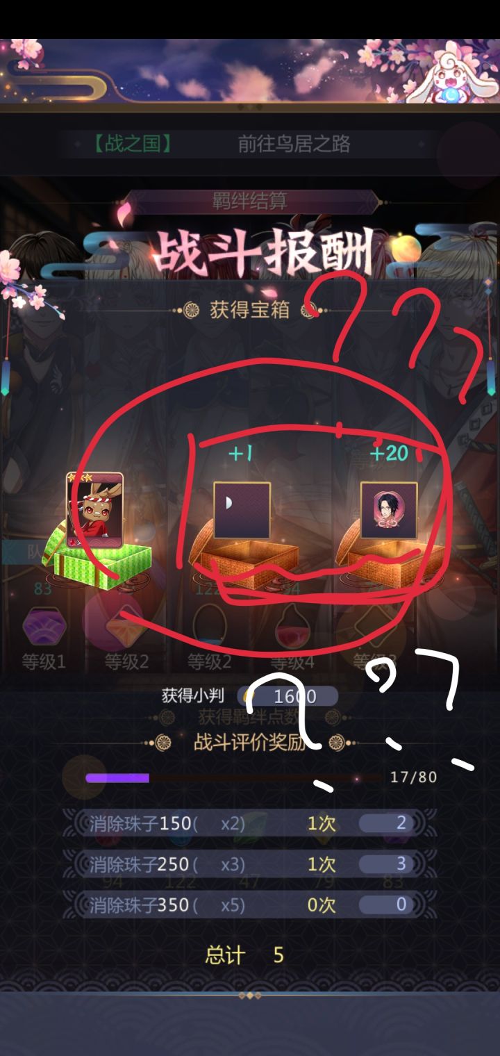 想起了我前两次活动双觉满破后就告别的肝五....心好痛……他们每一个都等于6个石头啊,可是礼物只能活动刷,带他们刷关也没那么多仓库位和体力,大量磕饭团的时候也只有活动只会带加成卡.....