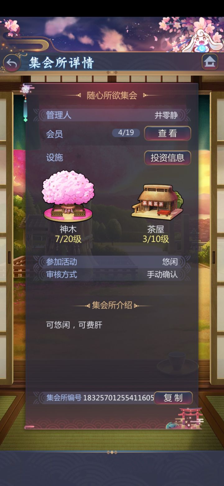 集会所编号:18323898711323701加入没有等级限制,也不需要每天登录,有事不上请假也ok。我们几个经常玩的每次活动都会肝完。刚刚改成了自动确认,就想招几个新人一起来玩啊_(:D)∠)_