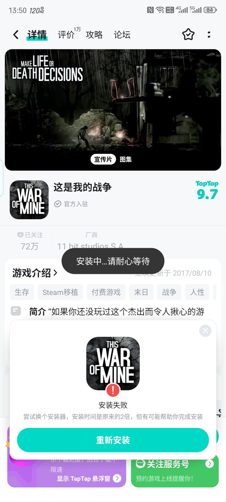 游戏安装失败