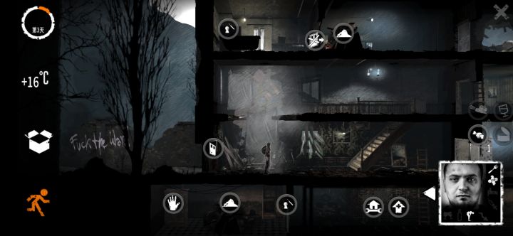 在这是我的战争中,机场这个图是提示有危险的,所以只要消除危险就可以了。因为地图提示危险,所以用罗曼。机场中一共只有三个人,两个士兵和一个老人,目标是要杀死这两个士兵。两个士兵一个在一楼,一个在二楼,有步枪两把,子弹24颗。在机场的第一片区域是没有人的,所以不用小心翼翼,可以放心搜刮零件。这个地方是需要铲子的地方,不过如果有耐心的话可以不带。接着就是机场的第二个区域,这里可以看到一个红点。在登机口