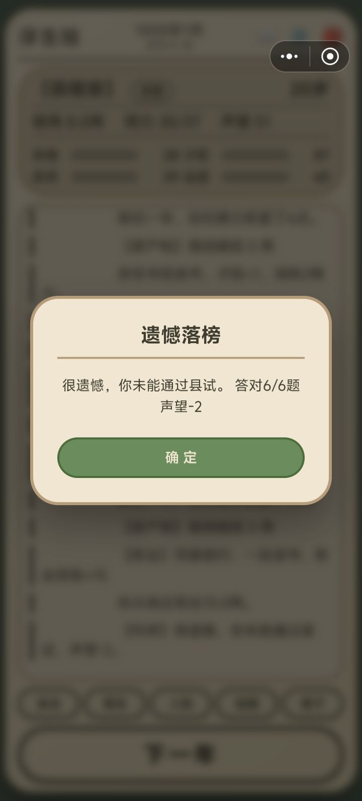 1.有的有家产税,有的没有2.既然不能催子女找工作和催婚,那那两个按键是用来干什么的呢请问?3.才智100,铜钱2000两的女儿去当农民?!!!!4.如图,答对6/6题落榜?我请问呢????5.自动存档根本没用,得手动存6.就不能连物品/田产/商业一起继承吗?下一代继承之后还得再买田买酒楼其他的目前没发现/小问题