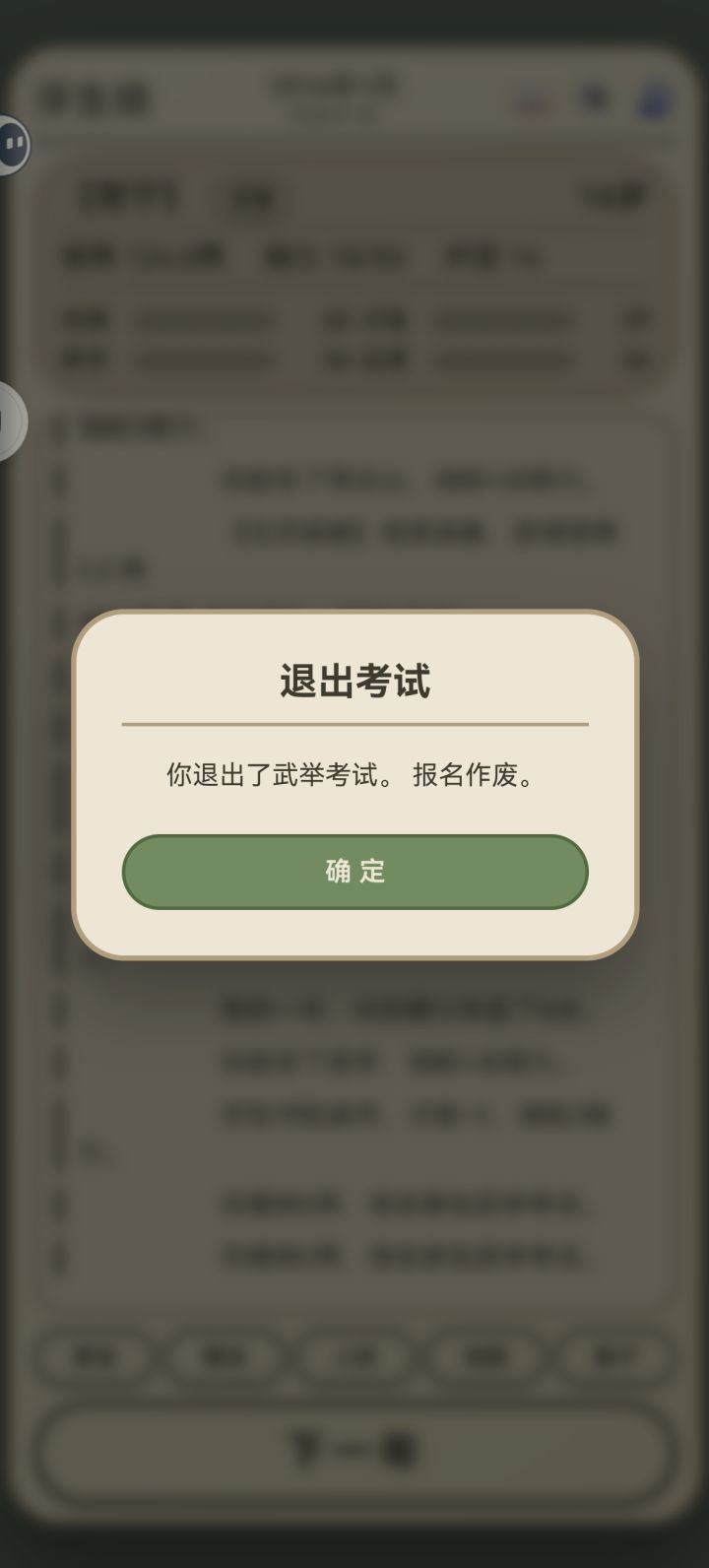 武举通过了,但是点界面外就说我退出了考试,点里面没反应