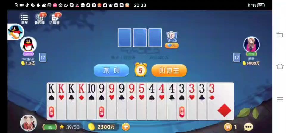 01玩斗地主第一步肯定是要看看自己要不要叫地主,但是不能盲目的叫地主,因为在牌没那么顺的时候很容易被两个农民针对一直连败。当你手里有炸,或者有大王,1-2个2,牌相对较顺的时候,可以叫牌。如果没有炸和大小王的时候,觉得自己牌比较顺,单的牌比较少也可以大胆尝试一下叫牌。切忌一直连胜后就觉得自己被胜利女神光顾而随便叫牌,一定要在有比较大胜算的基础上再叫牌。02斗地主五大技术模块:记、算、让、