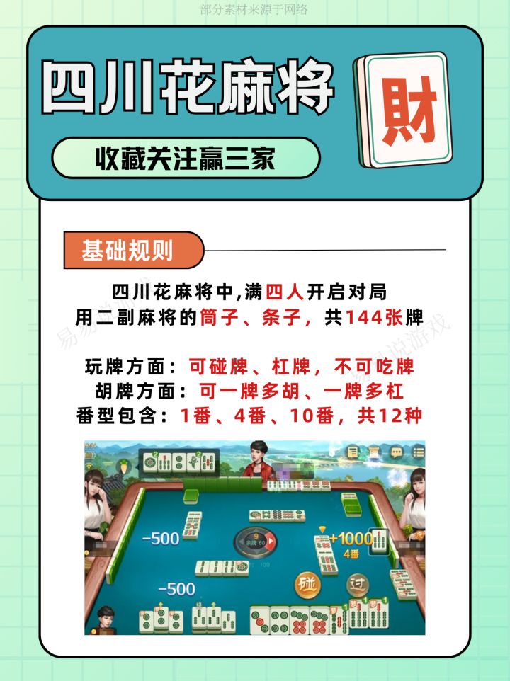 之前觉得麻将都是玄学? 直到被四川大哥按头安利花麻将… 学会花麻将后的周末…根本停不下来!💥 保姆级图解攻略马上来免费分享👏!!! - 一、玩法介绍 二、基础规则 三、萝卜加番 四、举一反三 - 点赞过500立刻更新《花麻将算番进阶篇》 学会后赢奶茶💰简直分分钟的事儿~ 大家打花麻将最爱做什么牌型? 评论区晒出你的高光时刻吧👇! #游戏 #游戏教学 #棋牌#