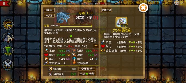 估计很多人卡在这一关,我来简单说一下配置,冰龙转速度,火神速度从左到右,火神全部远攻,凤凰都是双幸运,开局遇到后面的弓,直接拿海皇冻上,有漏一个直接重开,前面的看火神爆发了,死冰龙或者绿鬼直接重开,火神死太多也直接重开,多刷几次就可以过了,不懂的可以问我