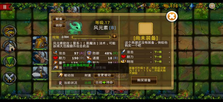 旧版玩了很久了,还在手机里,说实话游戏体验完美,苹果新版本出了好久了,一直想玩,可惜没苹果手机,终于等到你还好我没放弃,开整,玩了一段时间,目前体验良好,可惜法师职业敏捷全大削,雷法风灵虽然没有一代舒服但依旧给力,强度在线,弓目前还没体验,等后续阵容起来了再重新来。前期说实话没什么好纠结的,抓四个前排,八个雷法以及数个雷灵就行,牧师看自己需求,也可以抓几个武士随时调整位置防止被偷