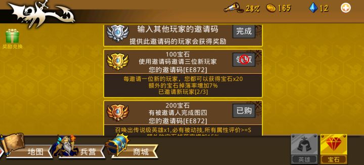 好了,正文开始 6元礼包、30元每日登录50砖礼包、30元周日礼包精英任务最多60砖石礼包。还有在过四图前和一个玩家互填邀请码过图四。 前期弓团正常开局,抓一排精英弓,别管数值,攻击速度S就行,打到主角20级左右花砖直接升级干到一百级。 点开礼包18000金币召唤随从,这个随主角等级直接就满级,然后就是等级压制过图,之后存砖石开二转,然后俩狐仙开二转,开到一百级弓手直接把低等级换下去,近战要