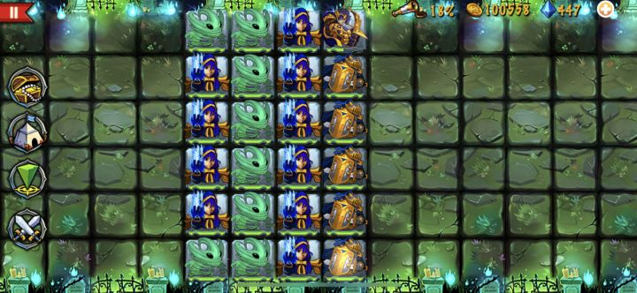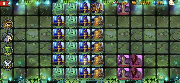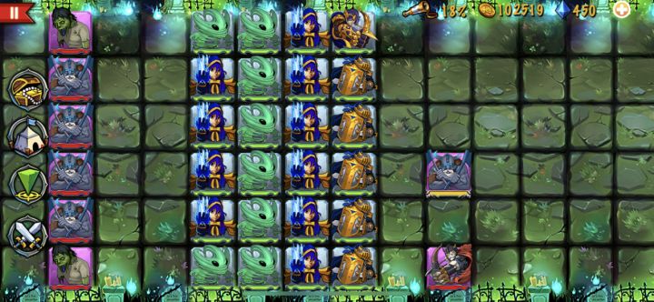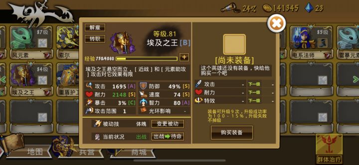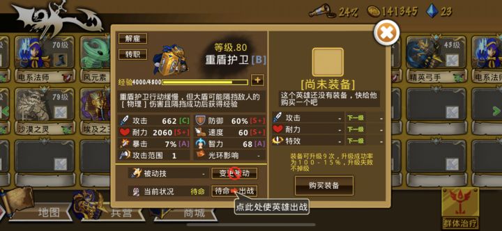 狂战士boss是真的猛,刚开始我想着用武士抗伤害,直接被一刀一个小朋友,毫无还手之力。研究了一下发现重盾护卫真是抗物理伤害的一把好手。而且和这两张图挨着的1-22和2-22就有的抓,优先度防御和耐力吧(纯强迫症,毕竟肉盾嘛,不过影响也不大,击中了都是一下的货)果断换成图一阵容,重盾最右侧抗起来,最右一排也可以先放最左,等后排包抄的狂战士出来后再移过去。前进途中如图二所示小心饿鬼,重盾别被炸了,算好