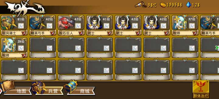 互填邀请码,EA4752,最开始随便选了骑士团,打半天发现团长技能太拉胯了,负面效果,看了下攻略有推荐弓团,试了下艰难推图,还是看看福利钻石拉等级买兵吧