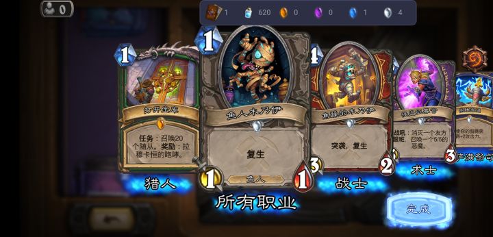 想起来中间退游了没开过大乱斗的卡,就买了五包,三紫一橙,做为一个非酋我已经很满意了