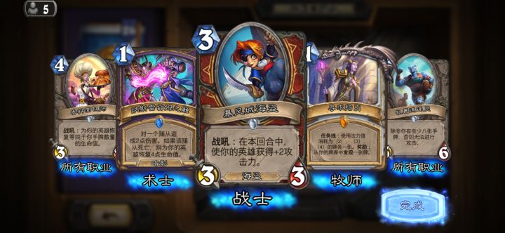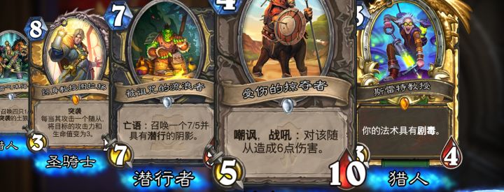 46个卡包,其中有不是新卡包的,开三个橙,话说那个牧师任务,我今天用以前的术士打,结果他把最后那张10费卡放进卡库后,还有7张卡,我直接把留了好几个回合的688拍下,结果5/7的概率呀,没有撕到,结果他1/2的概率呀,只能在那里“诈骗牧”