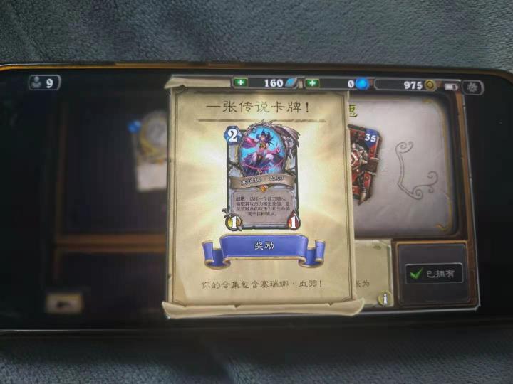 既然不能截图,就只能拍照了,35包2橙,保底了,牧师橙卡重复了,这个版本的卡齐了。😐