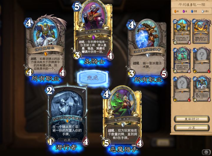 五包五橙(一金色一异画)三紫(一金色)讲个鬼故事,炉石临死前,哥们开了个五包五橙三紫,其中一张金色传说,一张异画传说开之前想着随手开开没开统计,开出双黄和金色我才意识到事情不对,从10包一橙,给哥们干到5包一橙,我现在该吃什么好的。
