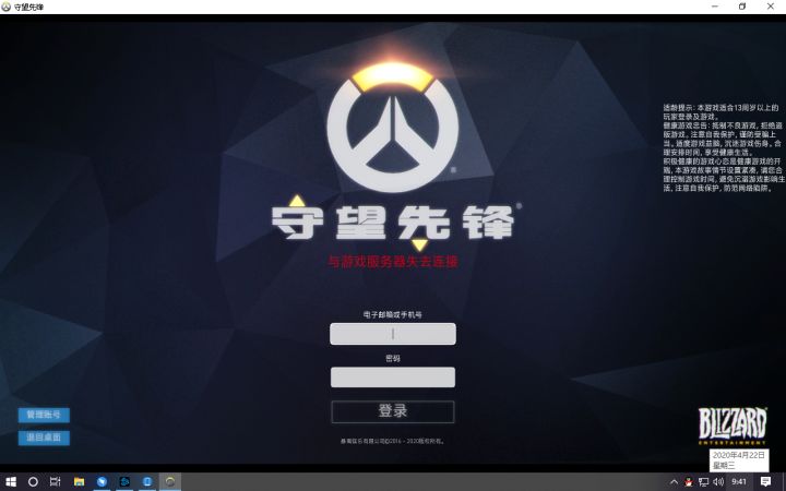 官方来看看呗,我是未成年,但是我玩不了所有暴雪游戏,守望先锋有一堆人在论坛发与服务器失去连接,我试着下一个魔兽世界,也是登不上,炉石传说也是,我觉得是有bug。之前守望炉石都能玩的。不是网的问题。是防沉迷机制的bug。我不管是什么时候进游戏都进不去。
