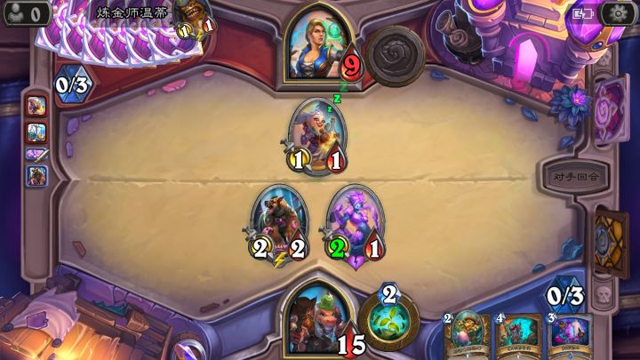 在刚才的一场冒险模式中我有幸遇到了四次卡机。然后就变成了这样的情况(左上角)具体情况是这样的:1、这是达拉然下水道普通模式第一个BOSS。2、BOSS一费时将我方聒噪怪与药剂师交换,二费时将已交换的聒噪怪和药剂师互换,成功触发彩蛋,然后在敌方回合卡住(ai长时间无操作)。3、重新登陆后,发现敌方回合已跳过,我方回合正常拍下灰熊,敌方技能成功释放,成功交换聒噪怪与变羊药水,但拍下聒噪怪时出