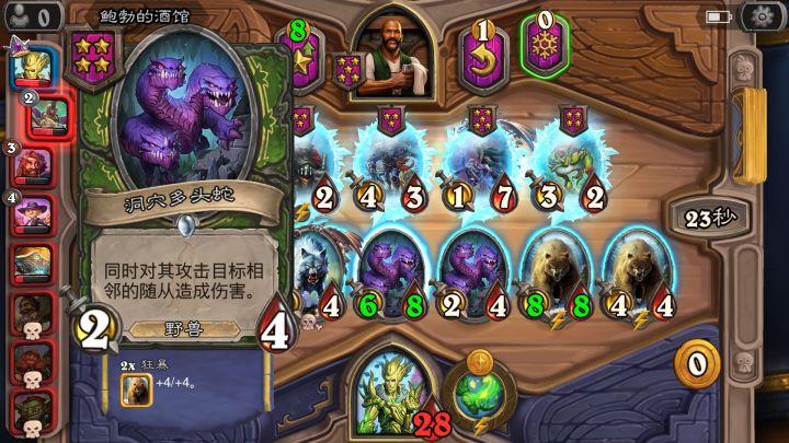 一个熊妈时下野兽没事,但两个熊妈在一起下野兽就会先升8再减4,所以就等于只有一个熊妈发挥作用,可惜了这一把有机会吃鸡的