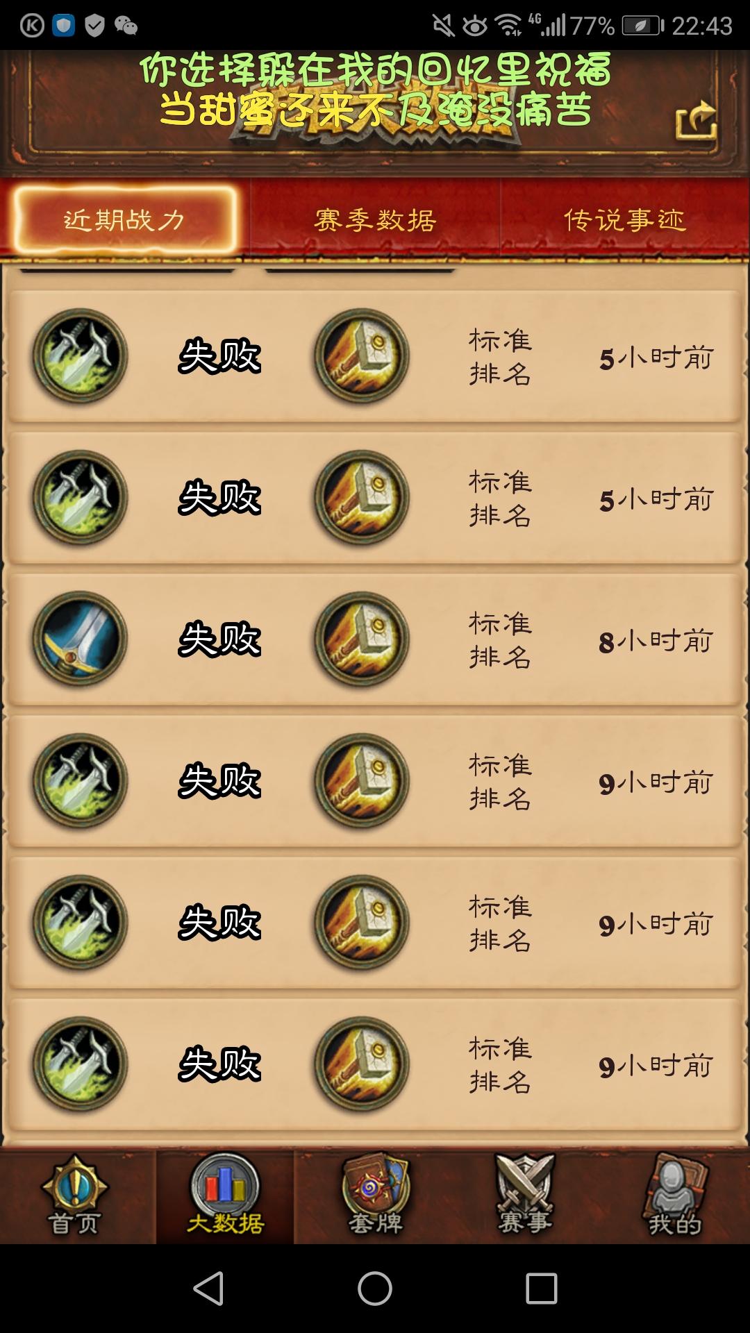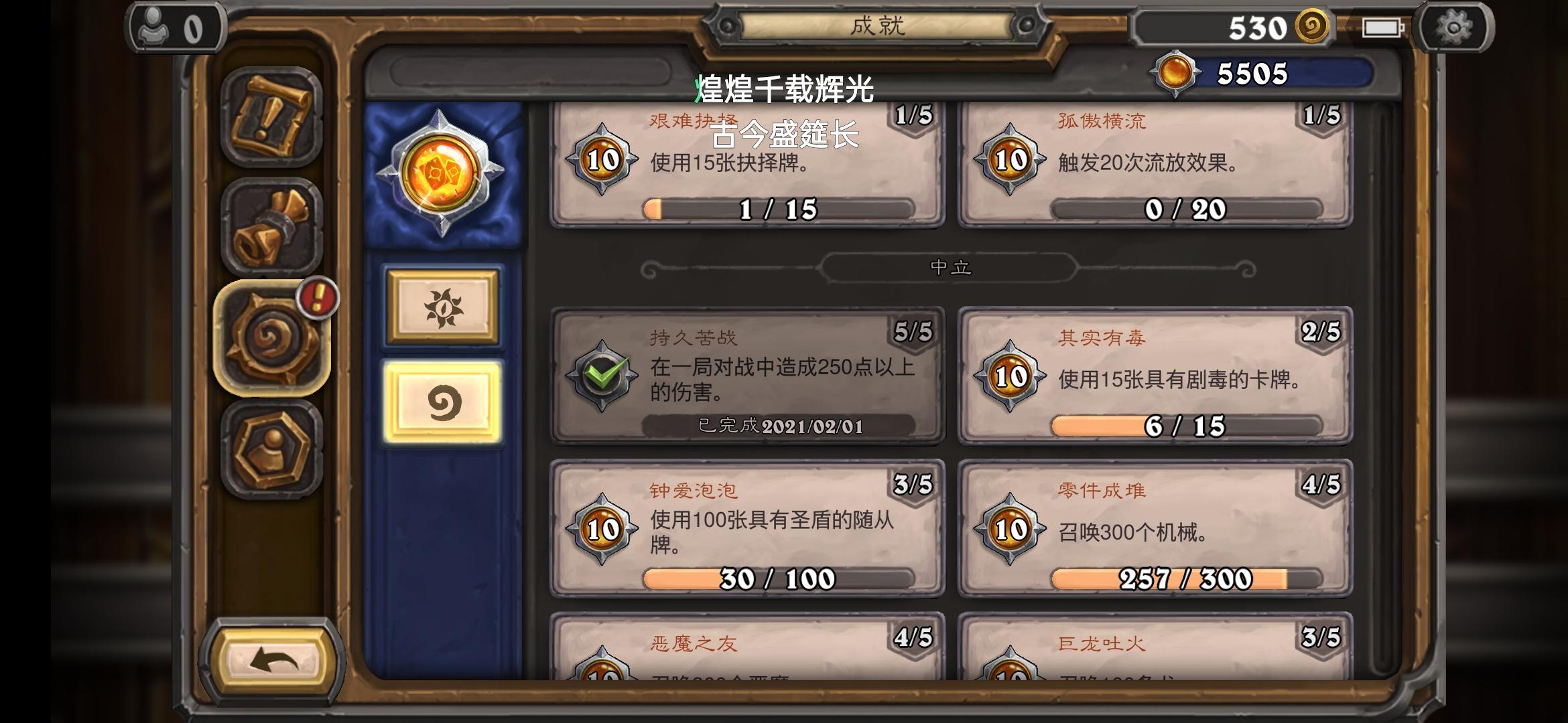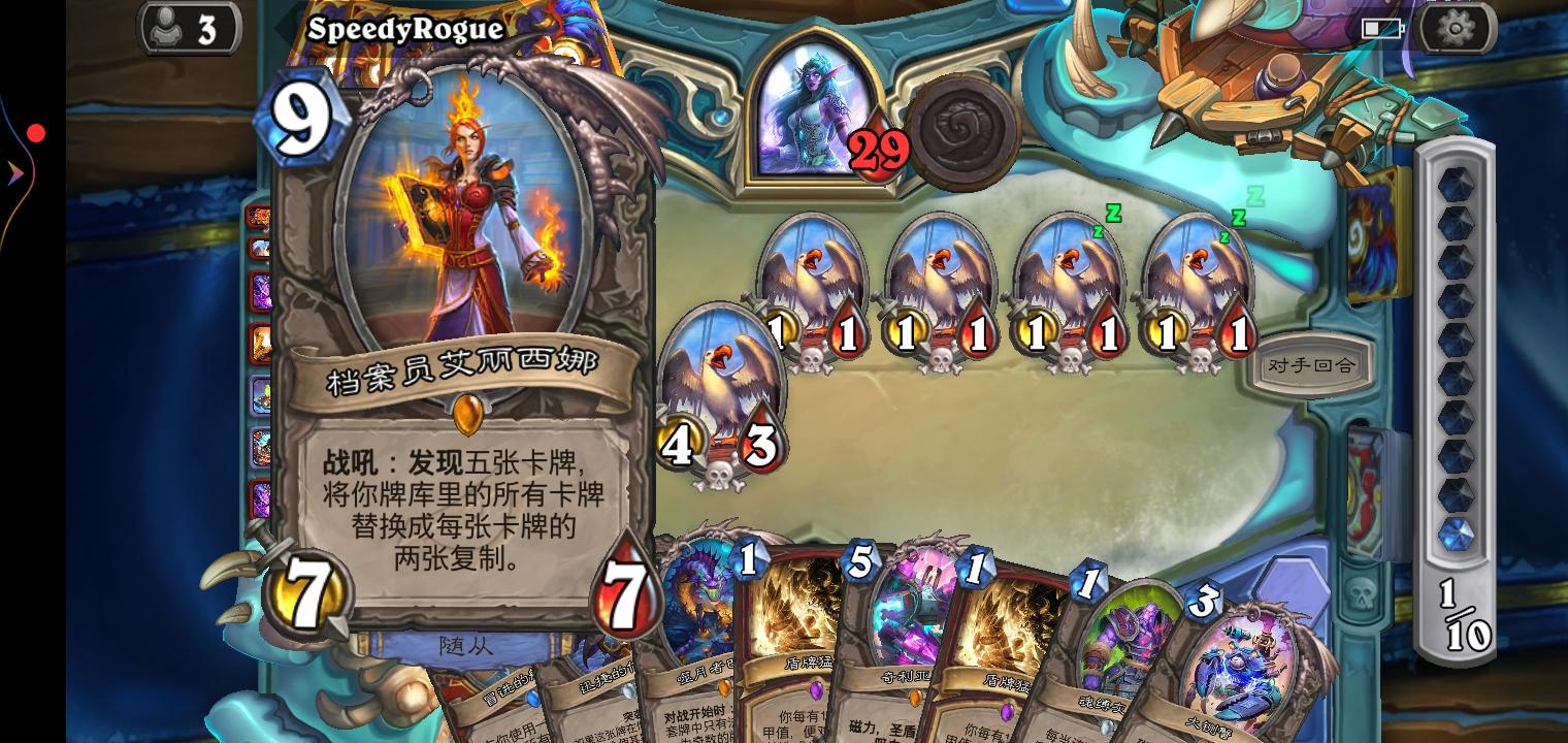 自己组了套术士娱乐牌遇见一个瞎组的刀任务贼,打了半个小时,双方牌库里不下15张终极随从快乐死了,要不是我拼出来一个克苏恩还真不一定谁能赢