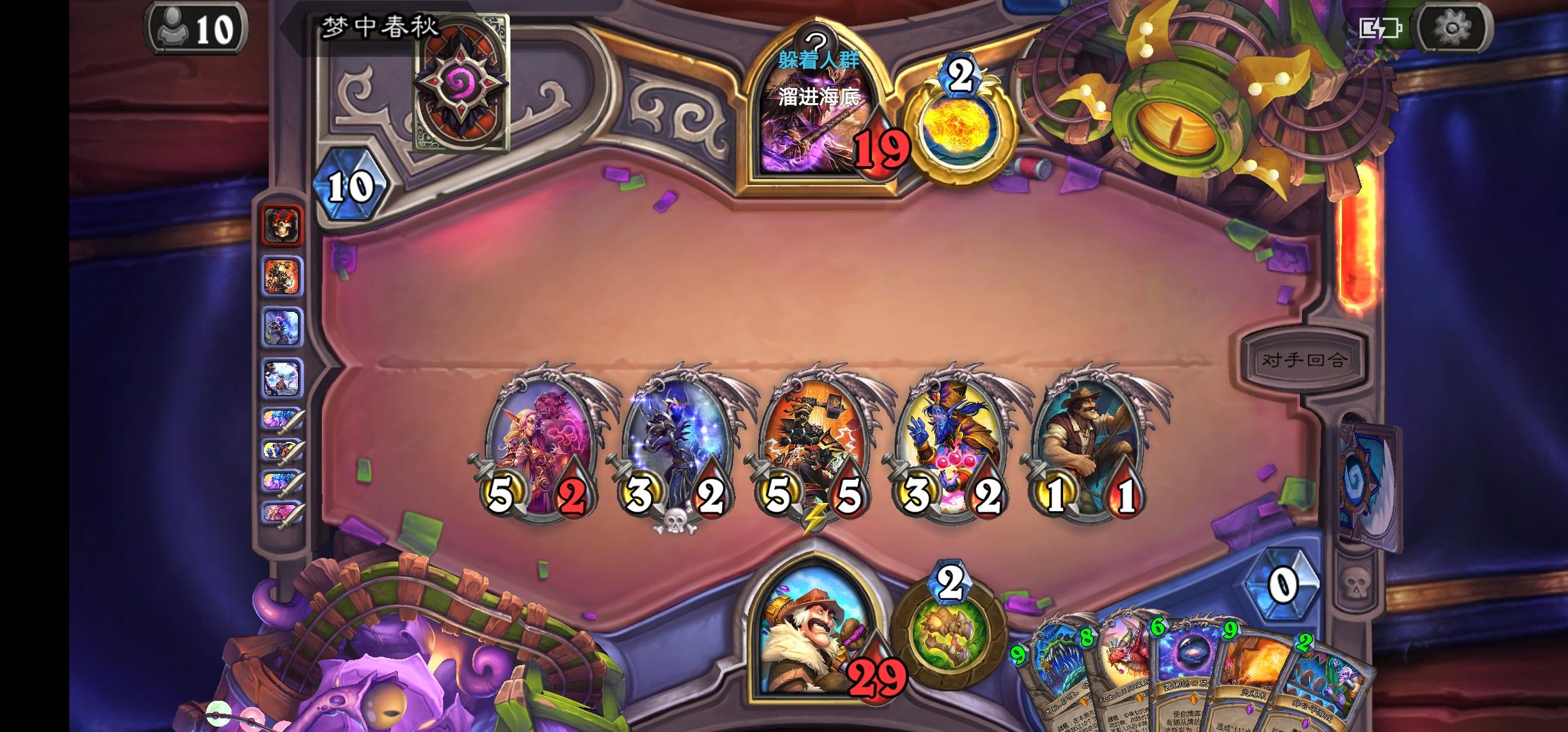 中间还有一个44随从版本的暗影步,让我用了3次高弗雷,所有的场面都是12345,亵渎都不用算,2次导演都给恐龙学,抽牌猛如虎。