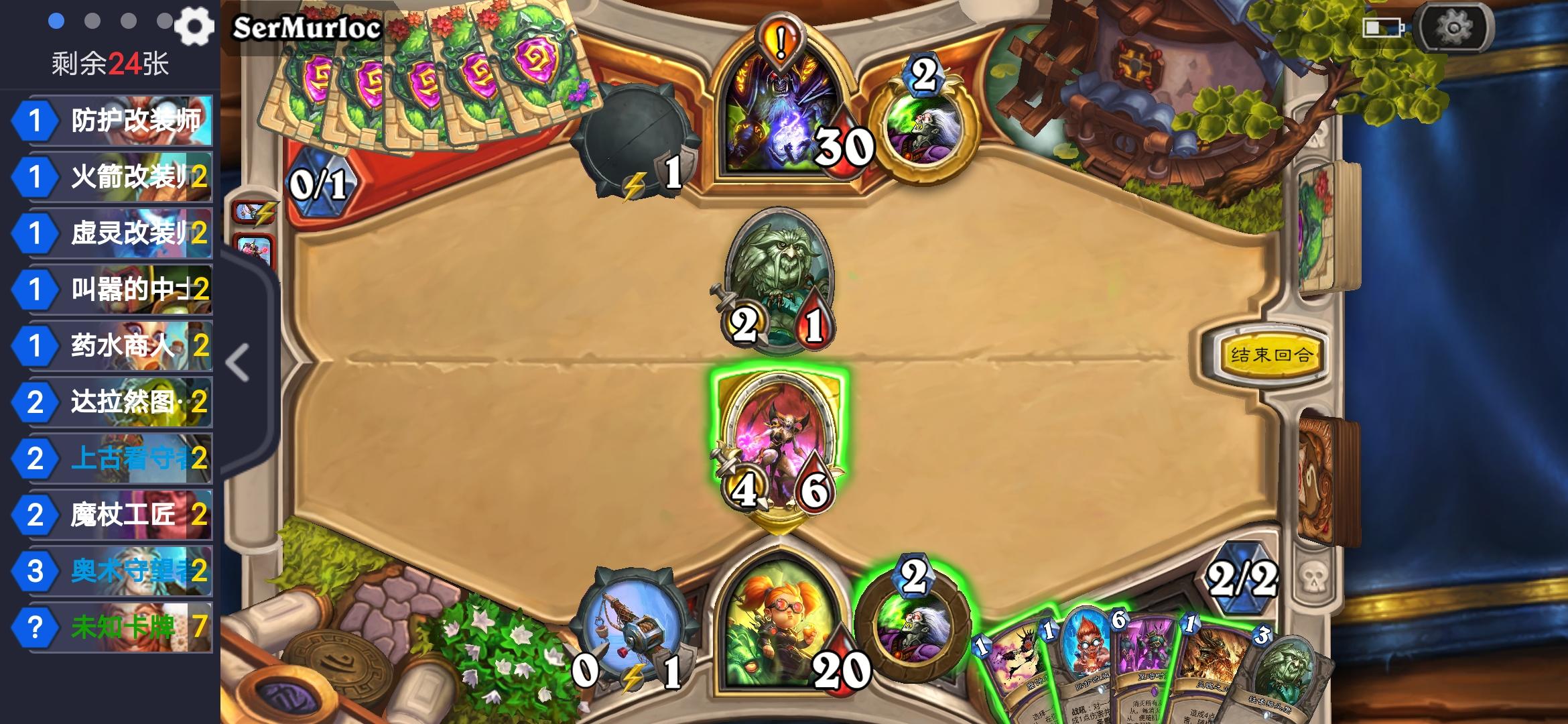 上一局被爆游荡恶鬼了,这次还好卸手牌关键,保持6张牌。每次遇到德以为不是快攻德,就是恶毒德。千甲德好难遇到。