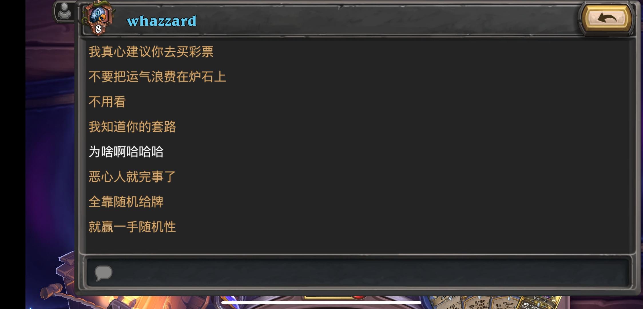 要不要这么狠!!!放了一半的随从牌死活抽不到!!!硬生生被瞎子砍死!!!