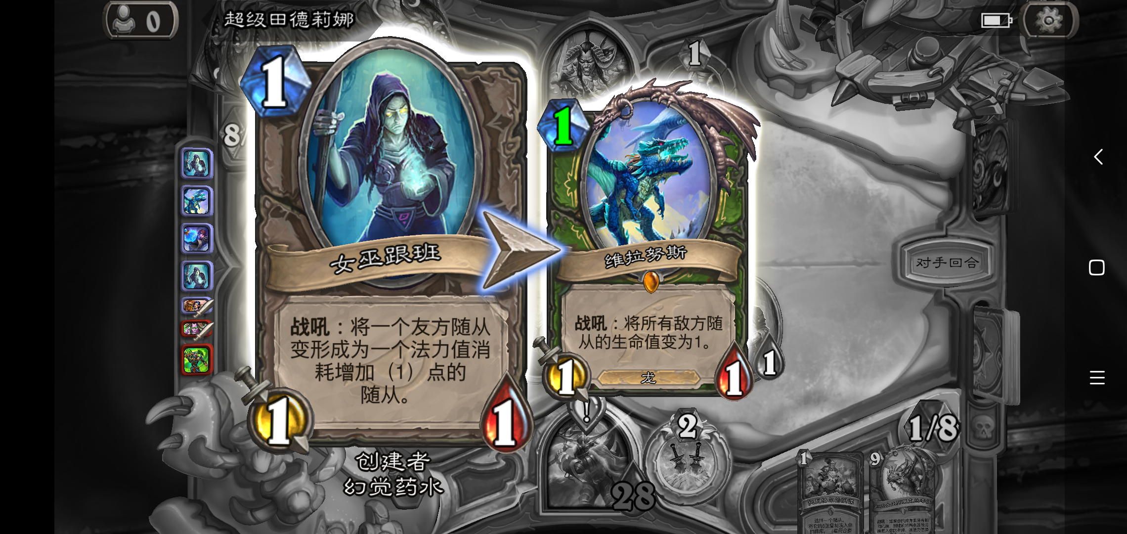 多年未玩,什么时候连女巫跟班都被砍了,怎么没有反尘?祈求贼以前玩过,我记得💣抽出来应该是零费的在手牌的,好久没玩,是不是我记错了?