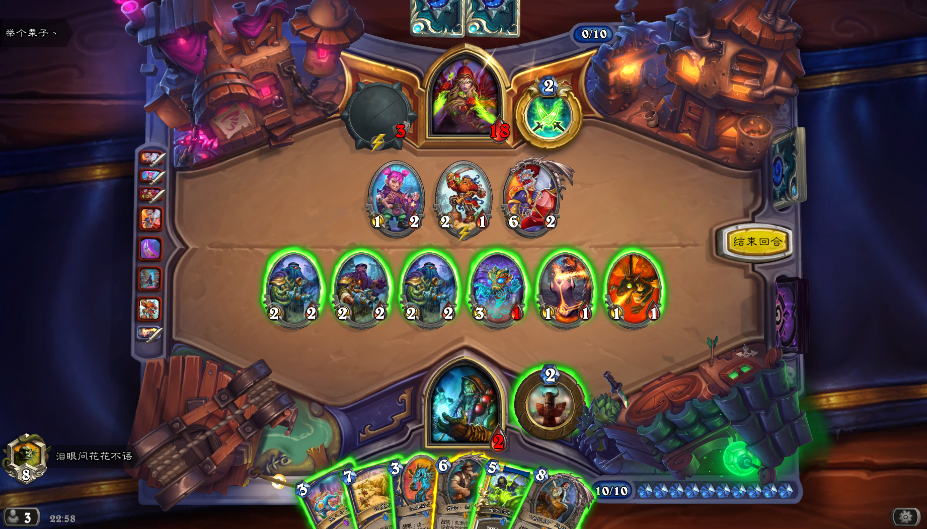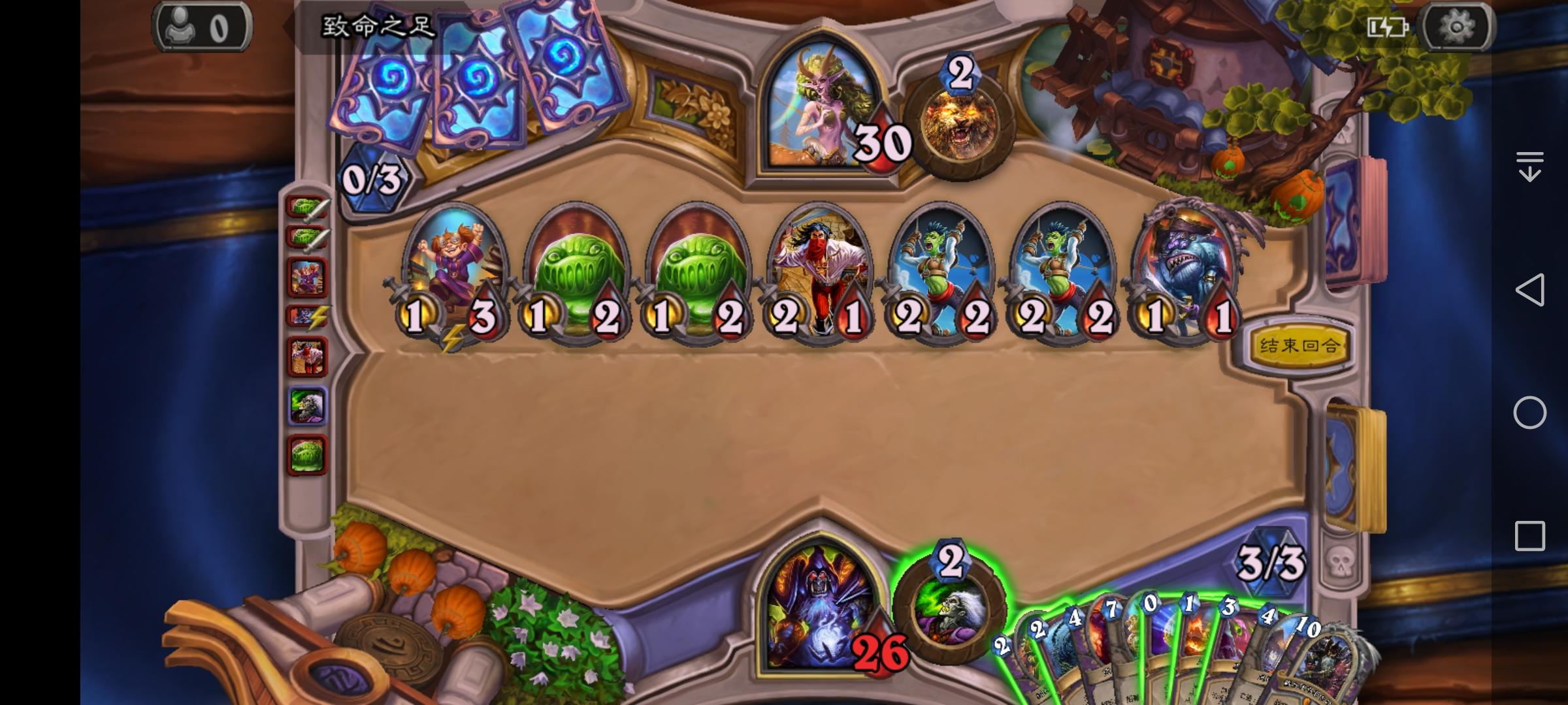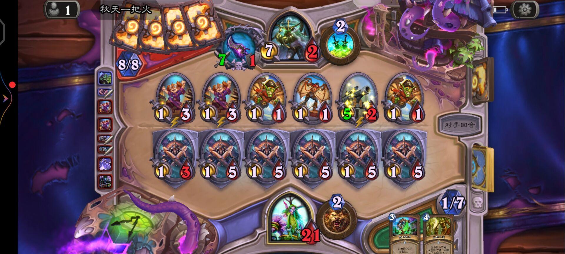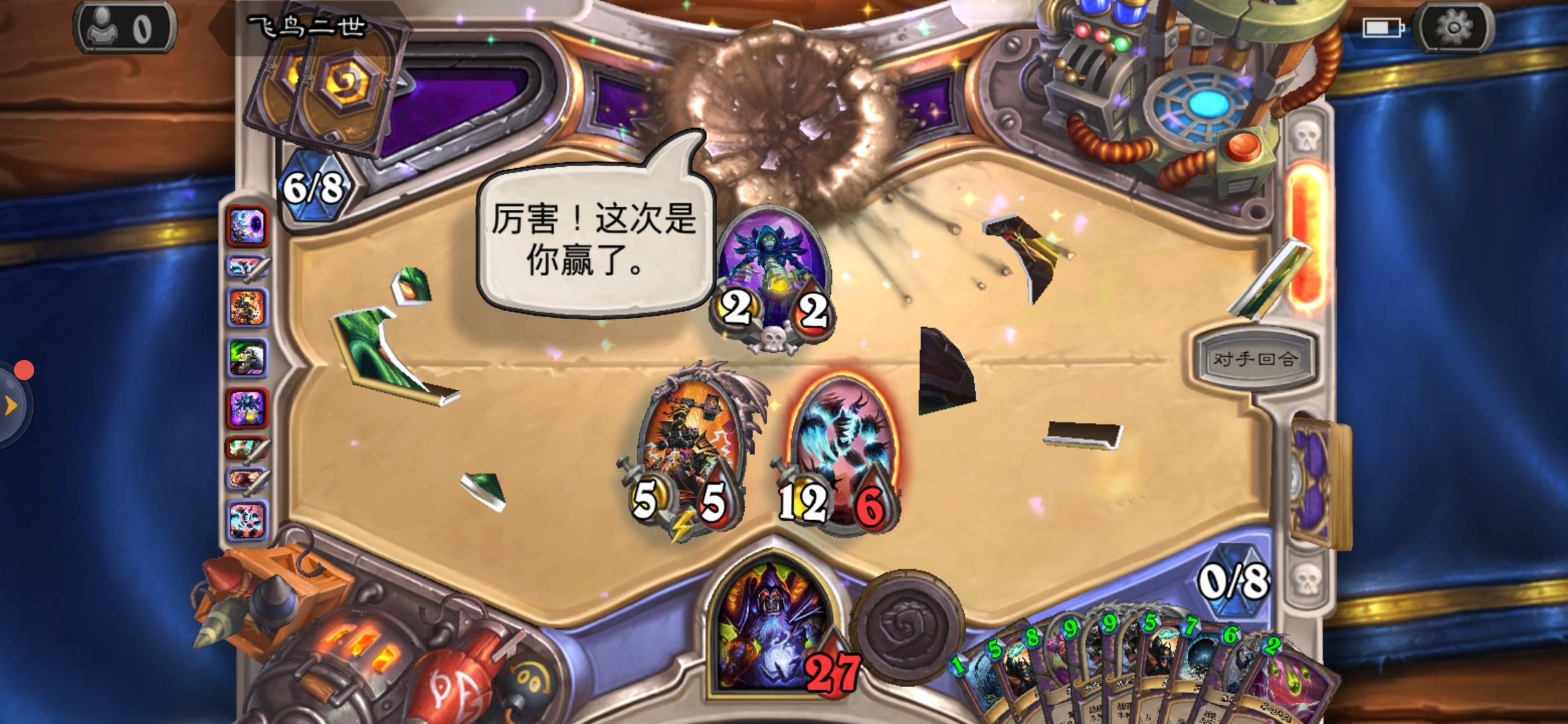 遇到一个诈骗术,想装作自己的组件够了,结果被我发现了,一个游荡恶鬼撕了手牌5个,2灾祸,2邪能箭,1缠绕。装不下去了¬_¬`