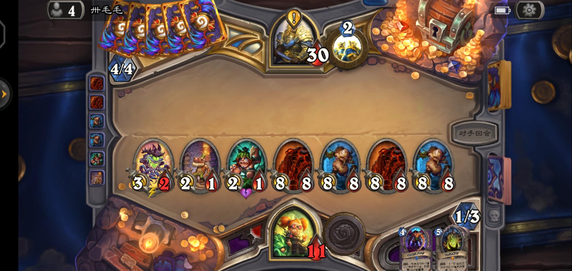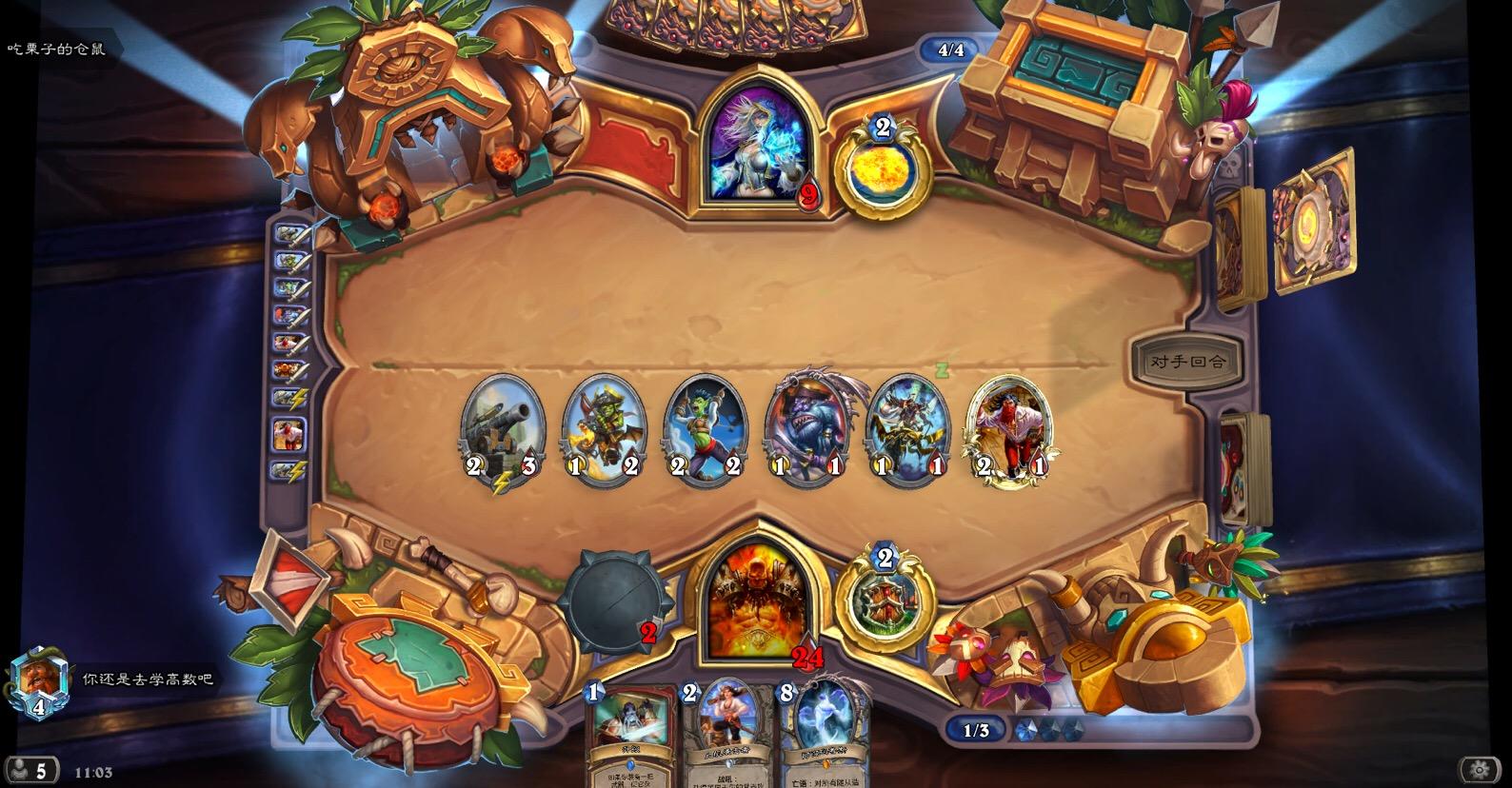 神奇!不过没有雷诺那么神奇。这只是我5费的场面。这还不是我最强的套牌。(对面牧师太惨了,没抓到暗言术•毁)(抓到就是我出问题了)
