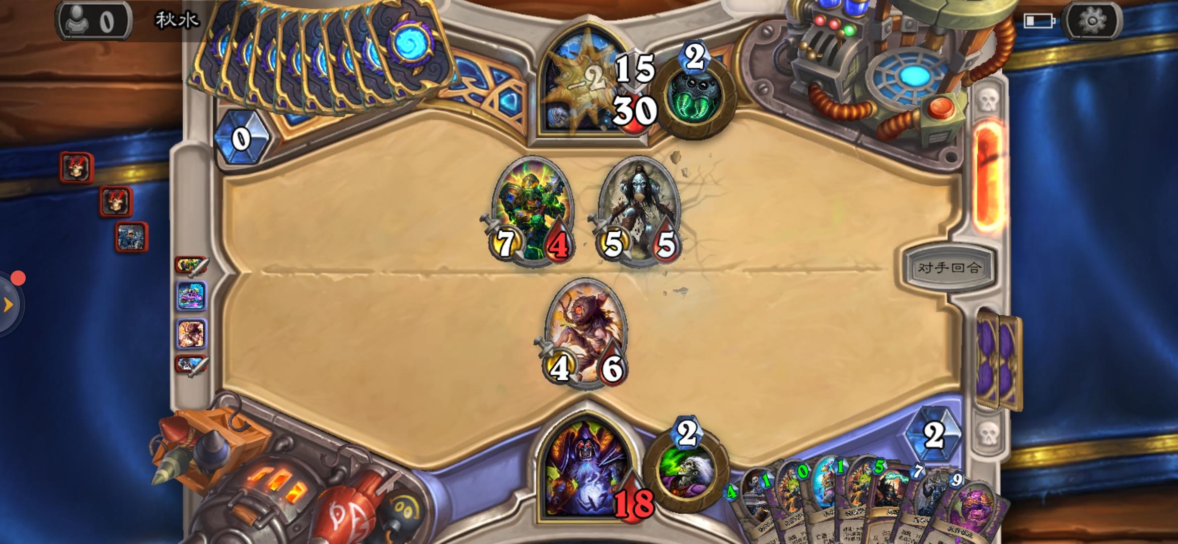 已经知道我就是普通的恶魔术了,还脏鼠拉,死亡之翼免费送。总结对面失误的特点,追求双亡者,该洗不洗,最后key牌不是没有就是只有一个,最后他的牌都可以猜出来了,2亡者之牌,2乱斗(我连怪都没有洗乱斗鬼用),还有应该是战路和斩杀。他要是洗裁决者,小鸟乖乖和驻甲师哪里会死,拼后期不是一定要解牌多,很多时候而是疲劳值和甲和血。对面要是变身后再留一个裁决者然后升级变成4甲,我稳输。