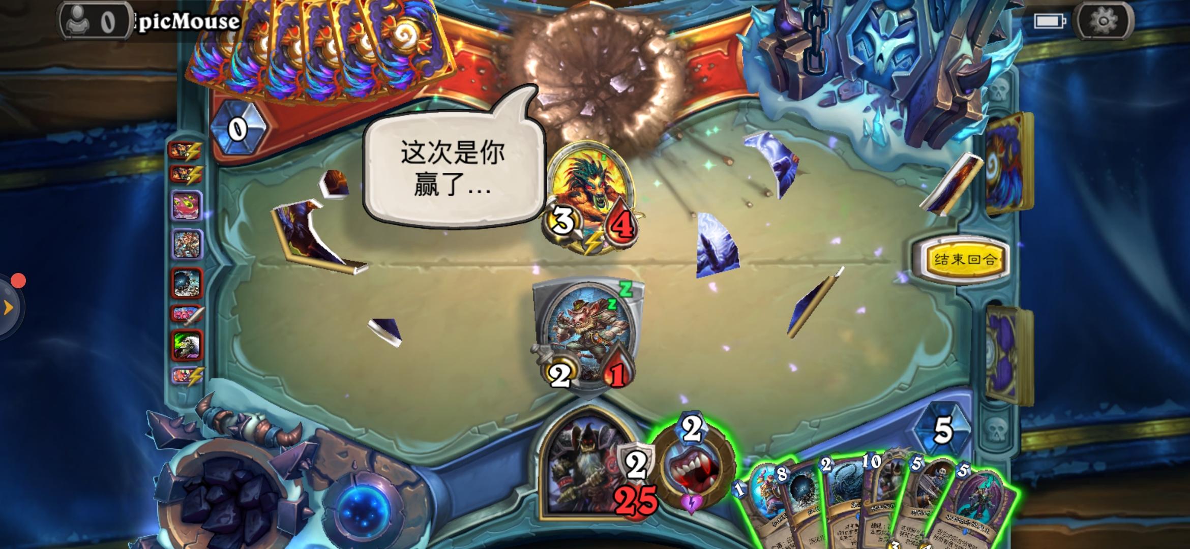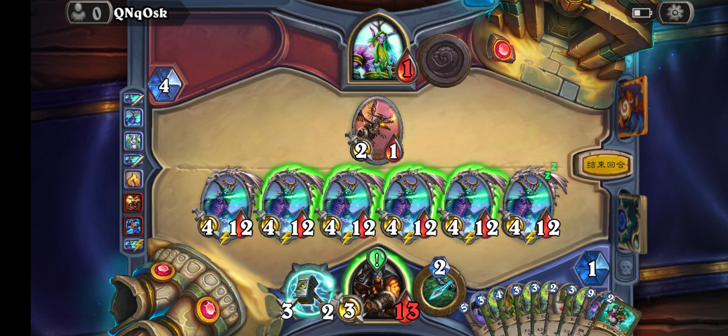 先开始,一直过牌,下4王子,中期克里丹,就是不用biubiu亵渎,我怀疑是快乐术,10费有点慌,先把dk变了,脏鼠一拉biubiubiu,对面直接跑路。