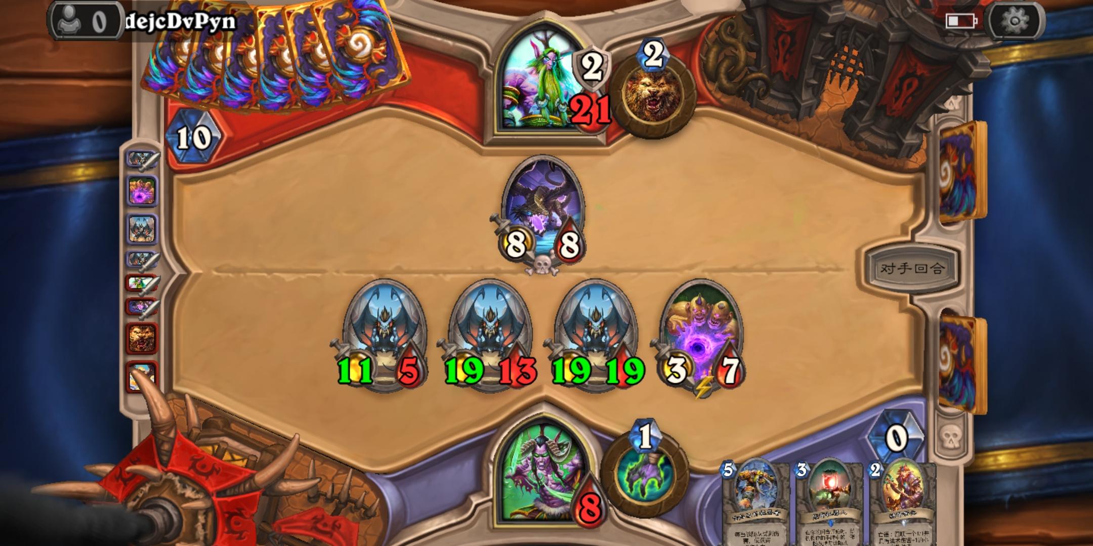 刚才宇宙牧打千甲德,爆了他一张7510,然后等到对面还有8张牌的时候下脏鼠,啥也没拉到,第二个回合用拉祖儿看了一眼没怪,然后给对面洗了6个树人,我寻思稳了,结果对面右手第二张就是7510,也就是说我下脏鼠的下个回合对面就抽到了,我真是吐了,宇宙牧9连胜断了。
