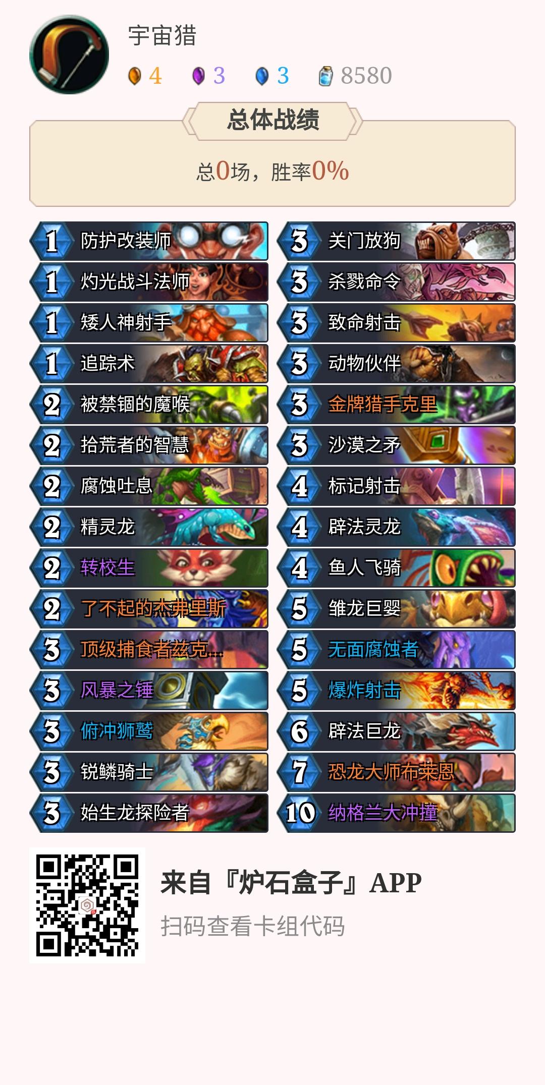 感觉头都被锤烂(真是快攻的版本,强度还是不够,还要加橙卡),这是要逼我玩快攻吗### 宇宙猎AAECAR8eqAKKA7UD4QSXCMUI2wnmlgP8owPkpAOmpQOKrQOLrQOOrQP5rgP8rwP+rwPnsAP/sAOCsQOFsQOHsQODuQOiuQP/ugP7uwPevgPDzAOH1APj1AMAAA==#此卡组代码来源于炉石盒子,上盒子,上传说猎人收集的