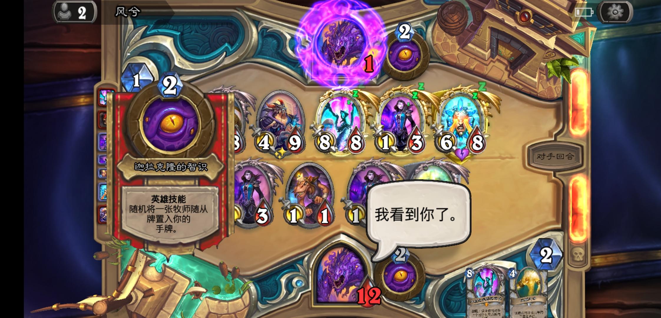 3费跳费控心拉商人,4费拉绿龙,对面7费用王子刚展开一点,雷霆绽放+时光龙控心术打这种德鲁伊太舒服了
