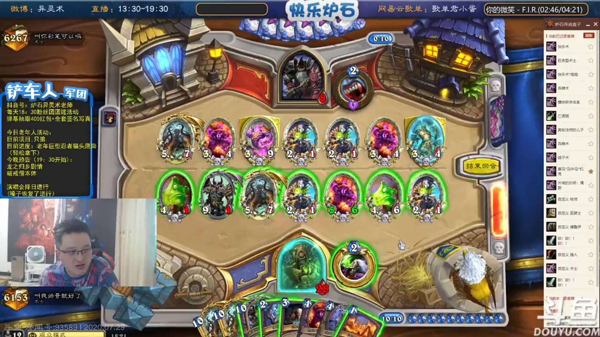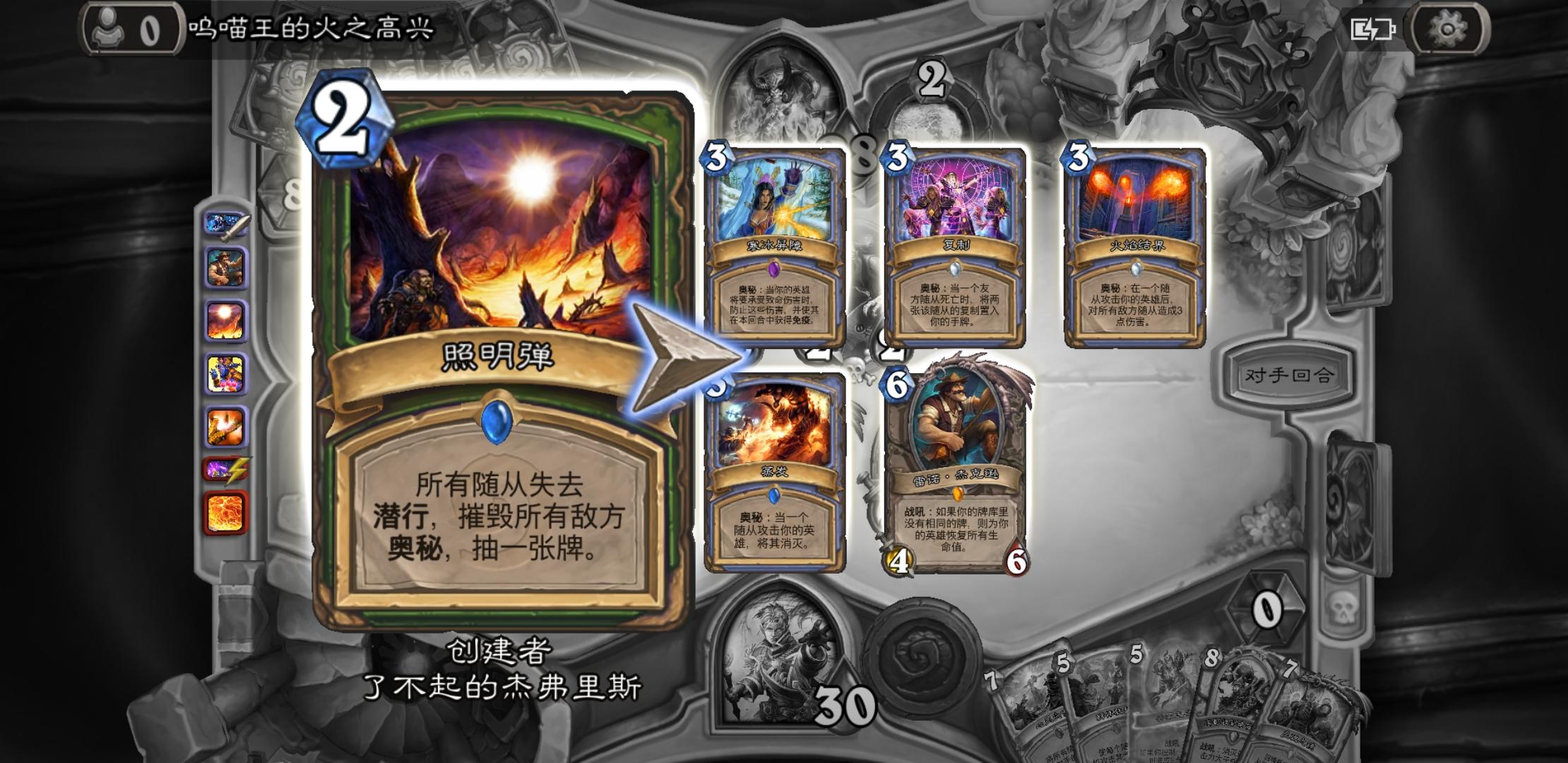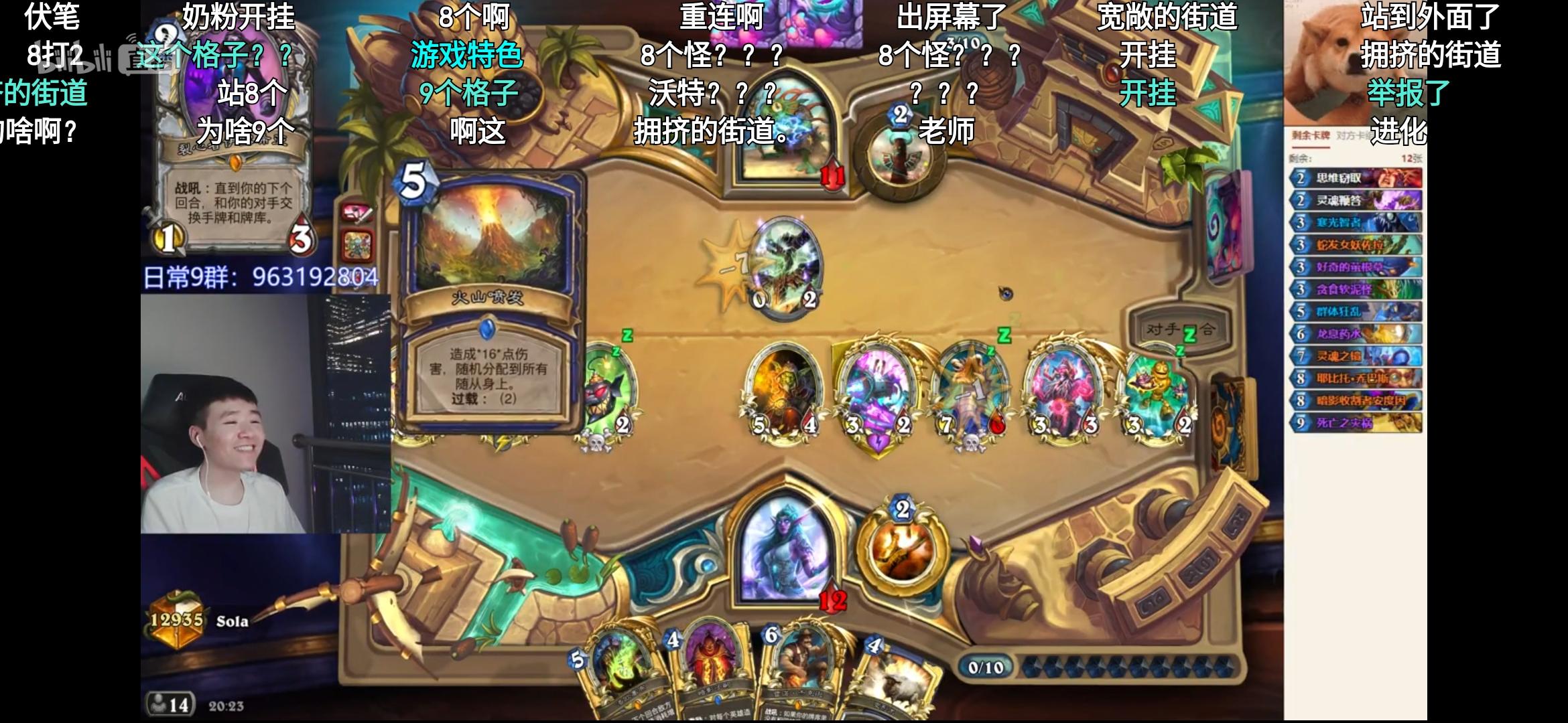 左边魔块里面是二王,最右边四个怪都是恩佐斯出的亡语没有东西,老师这波没能斩杀。问:这里能不能斩杀,顺便说一句老师彩笔。