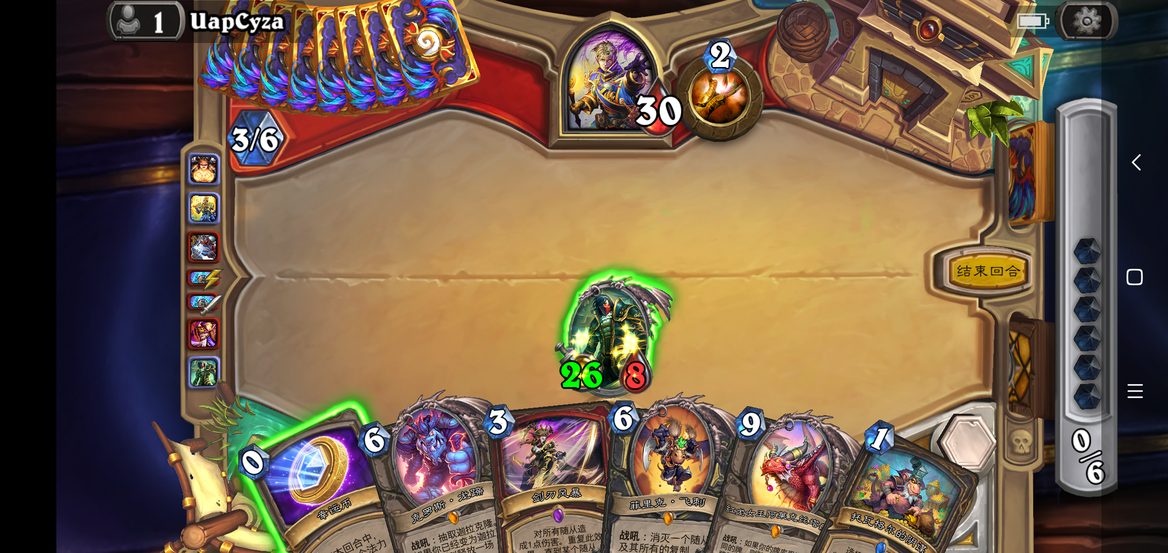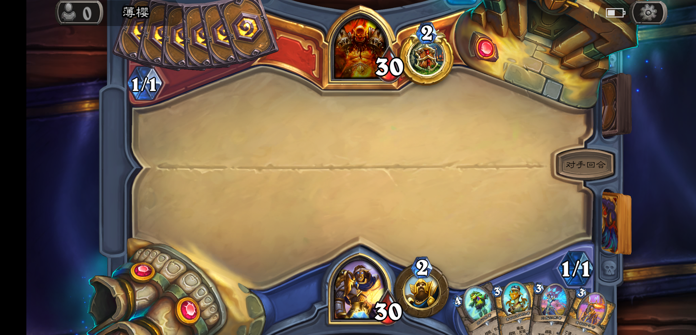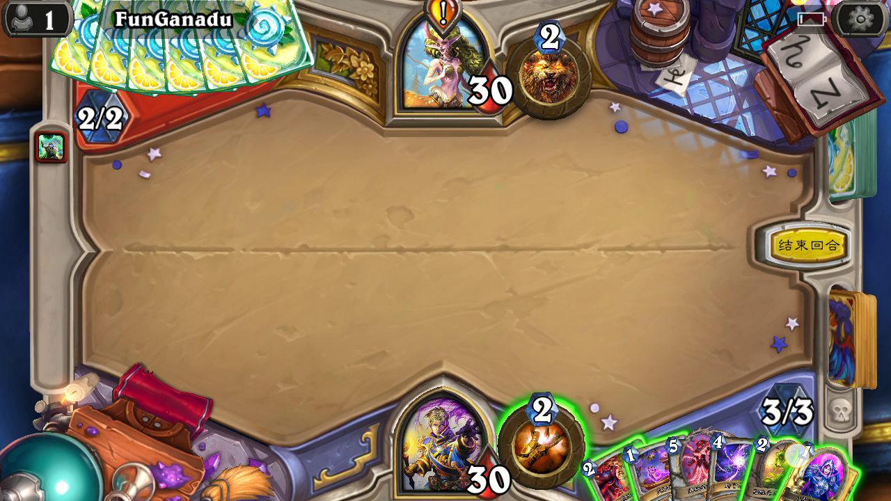我懵了,只能选择英雄技能和回合结束,打不出牌,点都点不了,而且还自动结束我的回合???