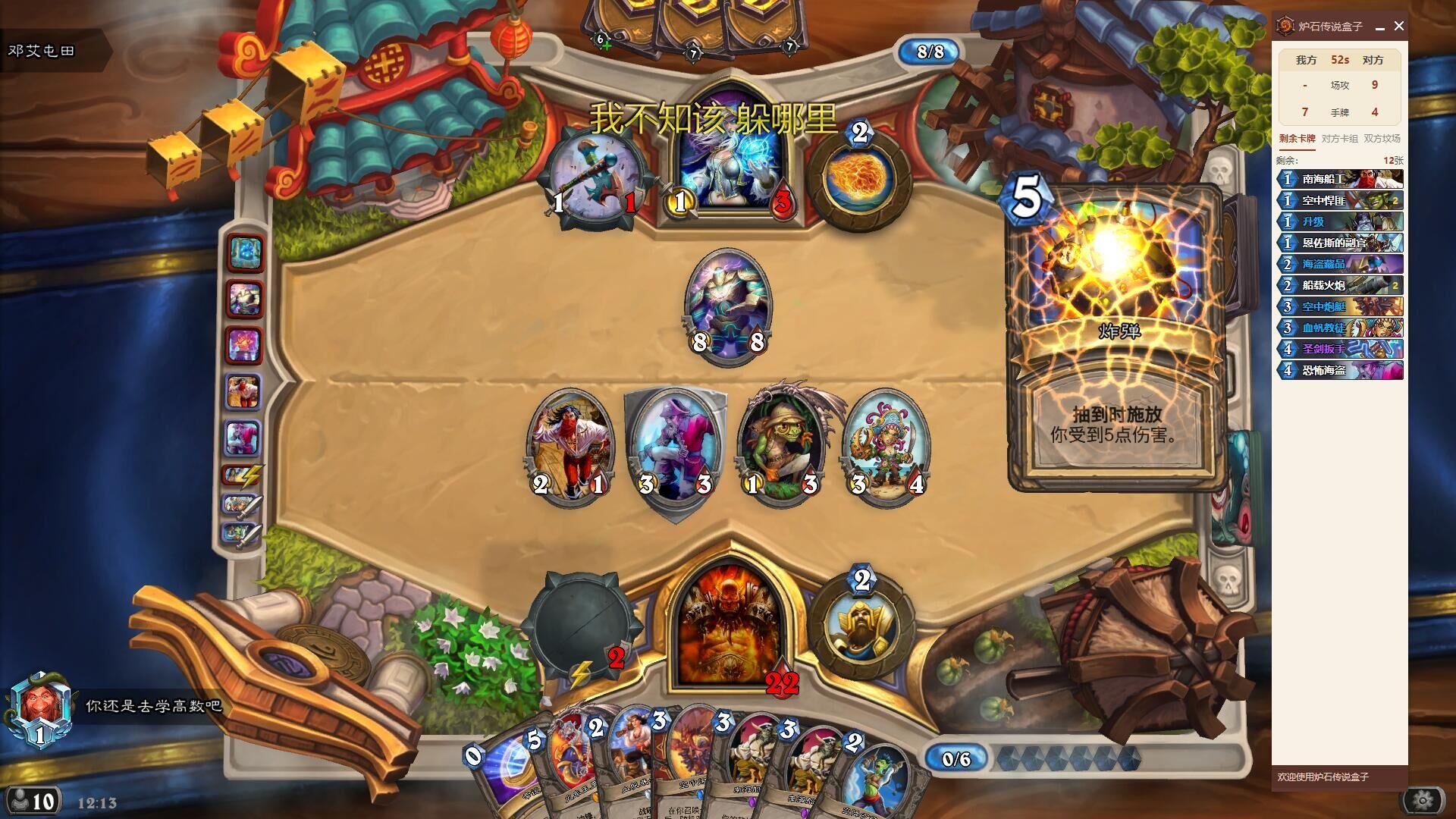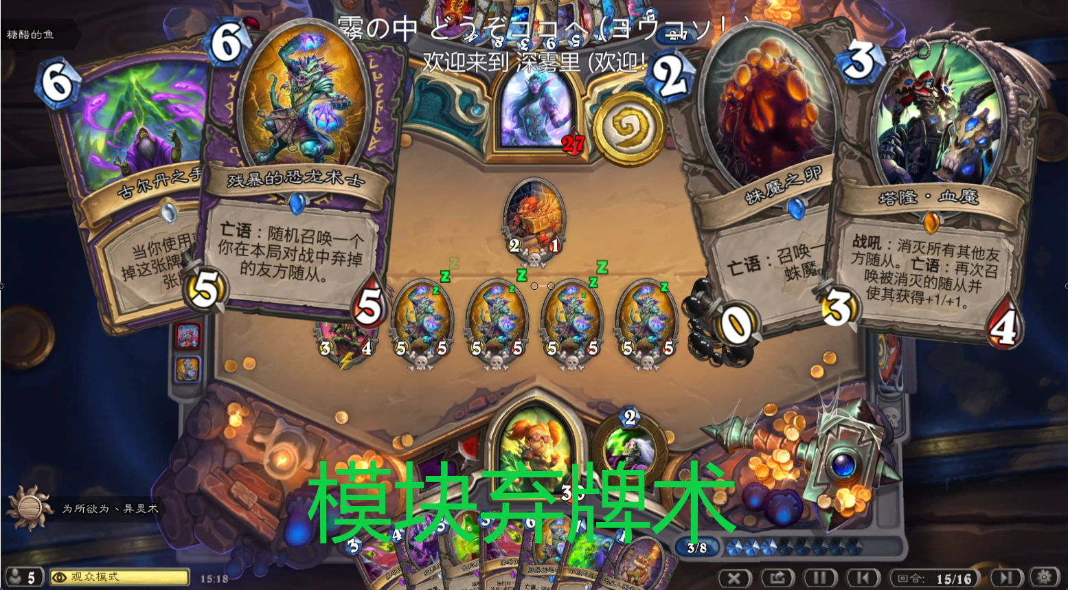 说出来你们可能不信,我宇宙牧在第十一回合抢死了一个莫名其妙战,我433造了一个十费药水,叠甲和打八,第十回合他把我维伦拉出来了,我身都没变就把它送走了。。赢一把爽一天,就是忘记截图了。