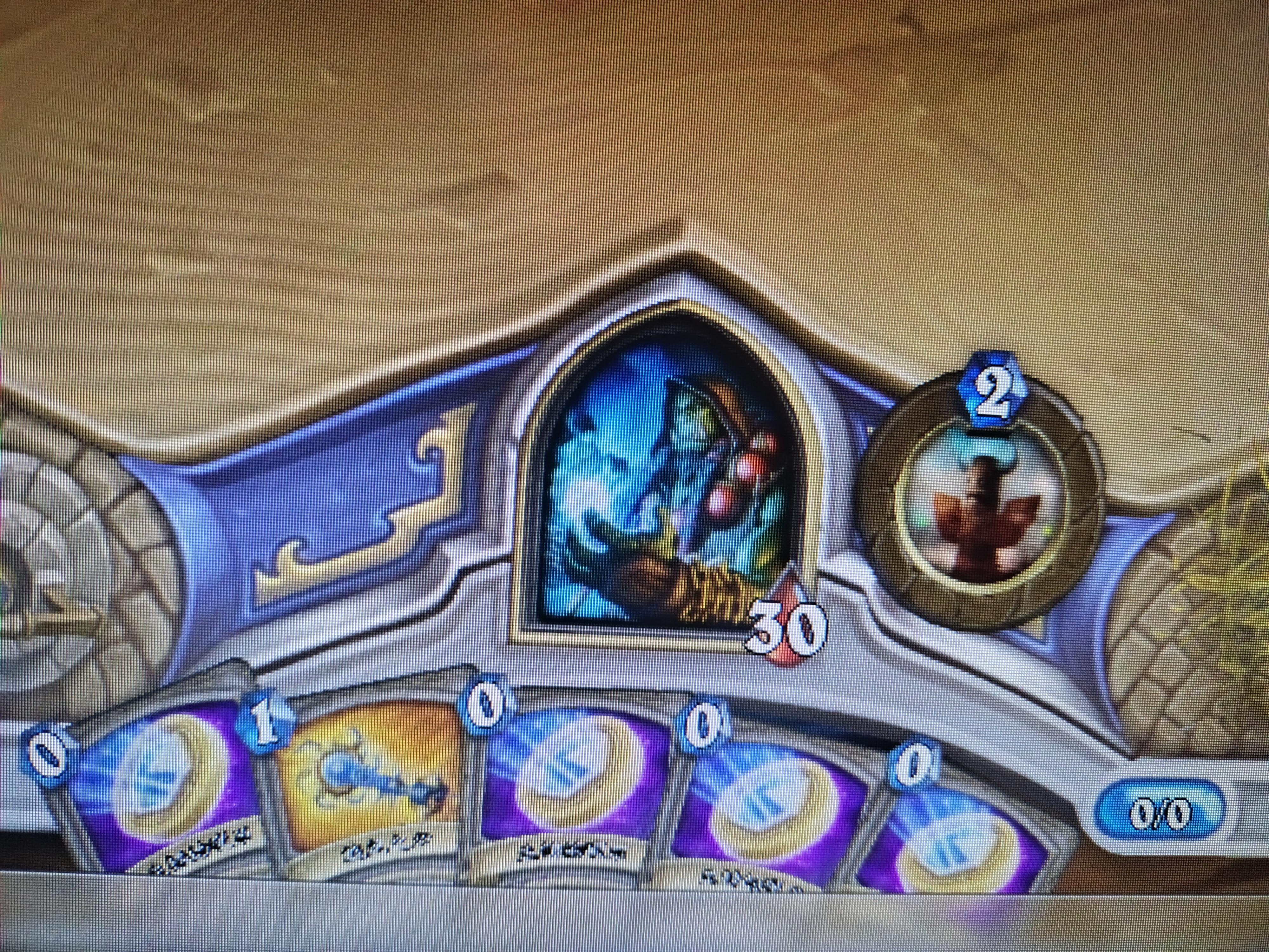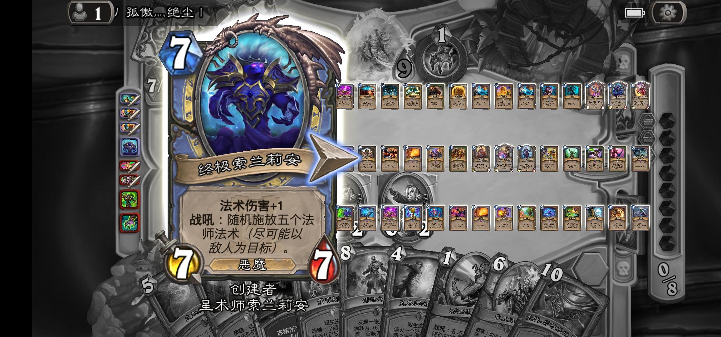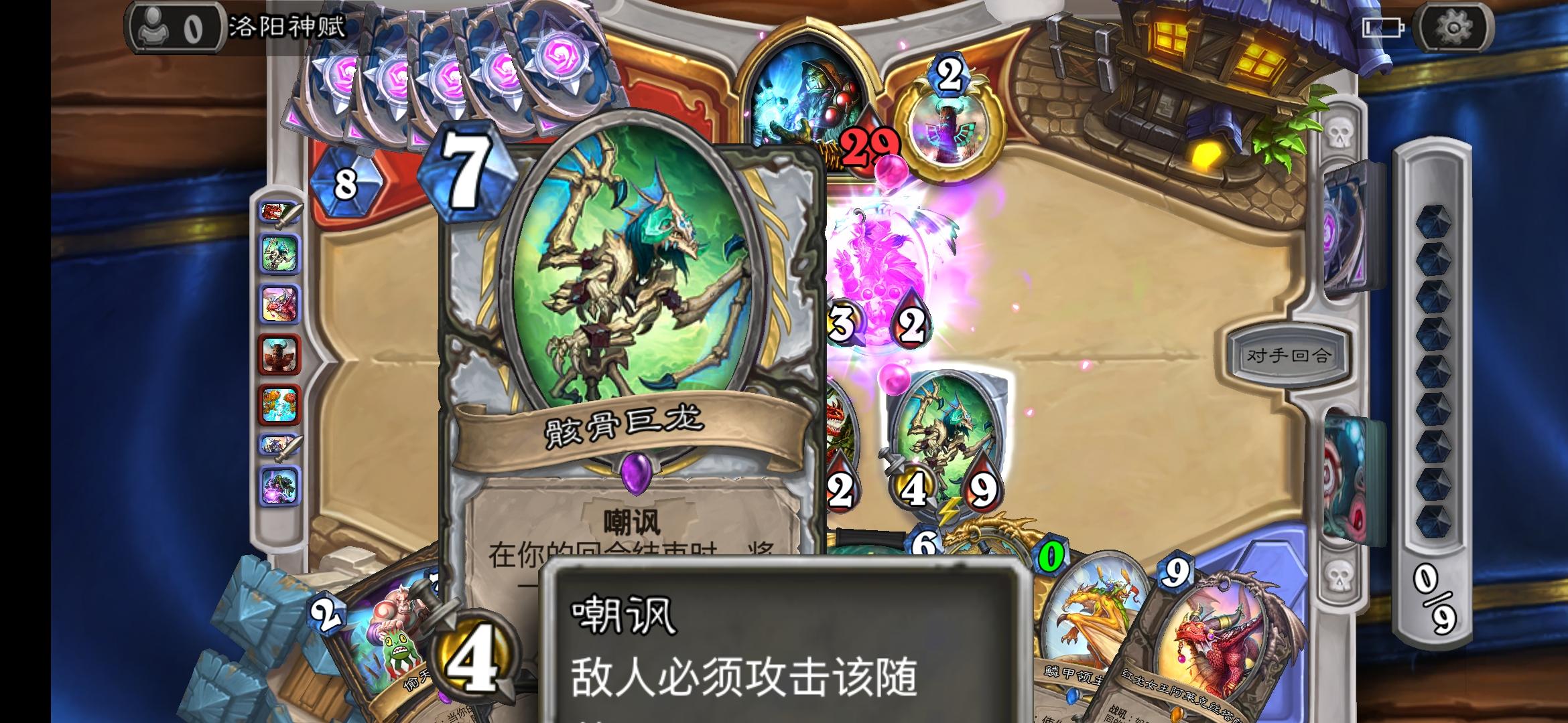 开局他招了那个会召唤一把1/3武器的1费兵,然后就召唤了那个传说的1/1海盗,接着我召唤两个小树苗,然后他在二回合又弄了两张1费的海盗。。。然后。。。然后我忘记了。。。挺危险的,如果他。。。哦,没有如果。。。