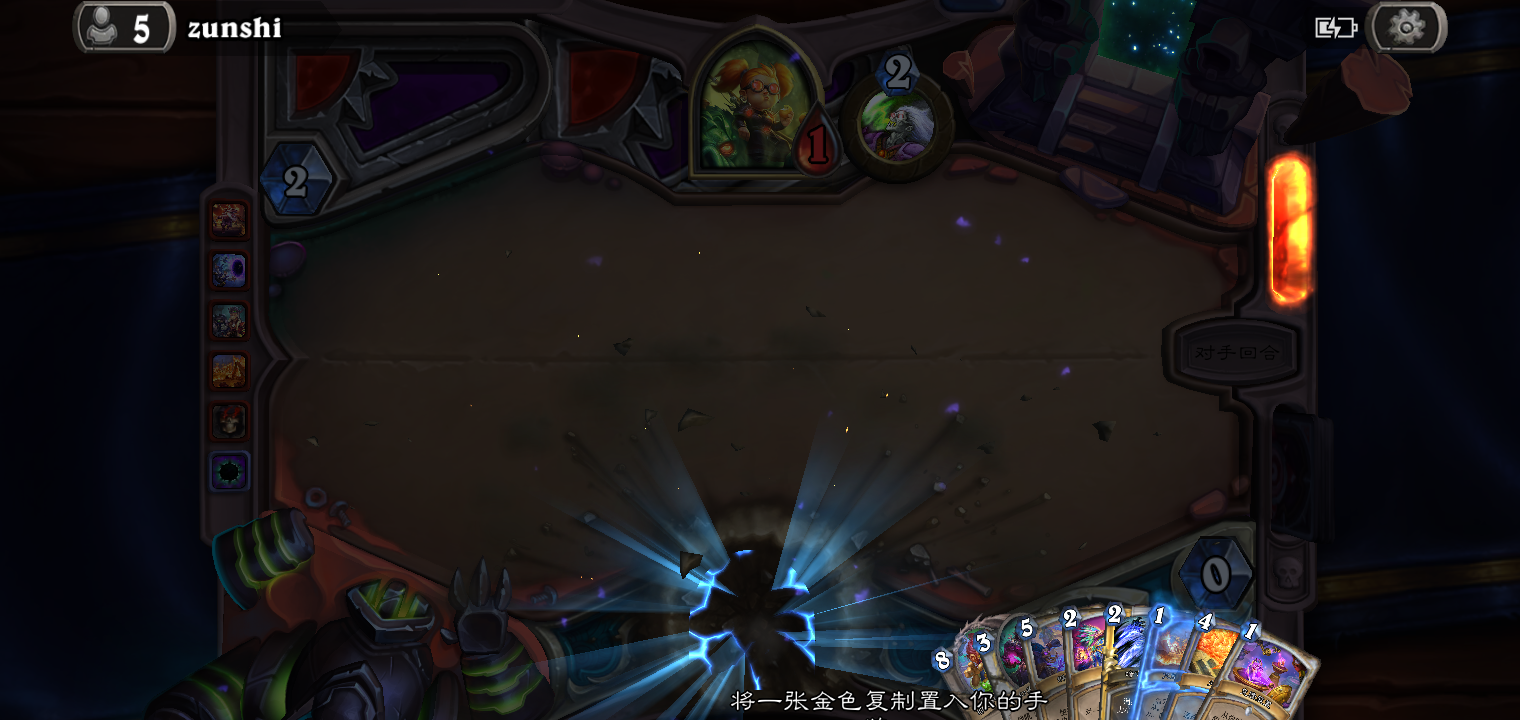 221供货商刷两个,然后无面一个,左拉回来一个,终极随从再出来三个,这把有点糊,全场最佳是对方的火妖哈哈